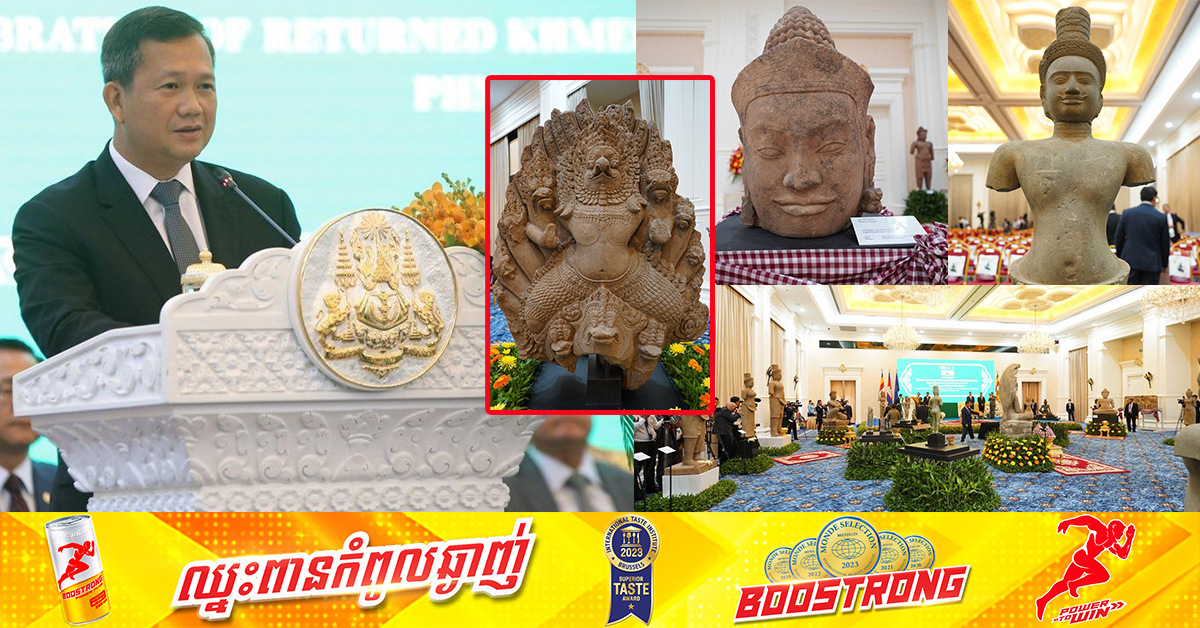 (ភ្នំពេញ)៖ សម្តេចមហាបវរធិបតី ហ៊ុន ម៉ាណែត នាយករដ្ឋមន្រ្តីនៃកម្ពុជា បានថ្លែងថា វត្ថុបុរាណដែលកម្ពុជាទទួលបានមកវិញនាពេលនេះ គឺជាមរតកវប្បធម៌ជាតិ ដែលមានតម្លៃពុំអាចកាត់ថ្លៃបាន សម្រាប់ប្រជាជនកម្ពុជា ដែលជាម្ចាស់ដើមដ៏ពិតប្រាកដនៃសម្បត្តិវប្បធម៌ទាំងនេះ។ សម្តេចធិបតី ថ្លែងបែបនេះ ធ្វើឡើងឱកាសដែលសម្ដេចអញ្ជើញជាអធិបតីពិធីទទួលស្វាគមន៍នៃការវិលត្រឡប់មកវិញនូវសម្បត្តិបេតិកភណ្ឌ វប្បធម៌ជាតិសរុបចំនួន ៧០ រូប នាព្រឹកថ្ងៃទី២២ ខែសីហា ឆ្នាំ២០២៤ នៅវិមានសន្តិភាព។ វត្ថុបុរាណ ទាំងនោះរួម វត្ថុចំនួន ១៤ រូប បានប្រគល់មកវិញពីសារមន្ទីរ Metropolitan Museum of Art នៅទីក្រុងញូវយ៉ក និង៥៦ រូប ទៀត