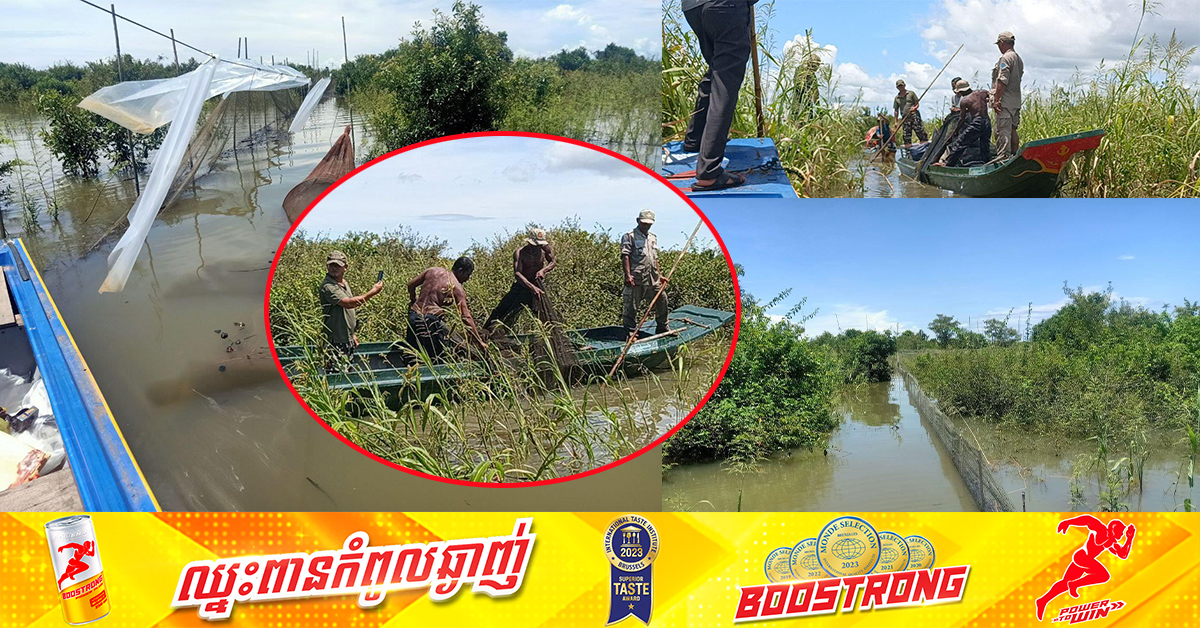 (កំពង់ឆ្នាំង)៖ លោក ស៊ុន សុវណ្ណារិទ្ធិ គណៈបញ្ជាការឯកភាពរដ្ឋបាលខេត្តកំពង់ឆ្នាំង និងលោក ឯក ស៊ុនរស្មី ព្រះរាជអាជ្ញាអមសាលាដំបូងខេត្ត បានចុះមកពិនិត្យការនេសាទដោយប្រើឧបករណ៍នេសាទខុសច្បាប់ នៅក្នុងរដូវបិទនេសាទ ស្ថិតក្នុងភូមិកំពង់ព្រះ ឃុំឆ្នុកទ្រូ ស្រុកបរិបូរណ៍ នៅព្រឹកថ្ងៃទី១៥ ខែសីហា ឆ្នាំ២០២៤កន្លងទៅនេះ និងបានប្រទះឃើញបទល្មើសនេសាទដោយប្រើឧបករណ៍នេសាទខុសច្បាប់ នៅក្នុងរដូវបិទនេសាទមួយចំនួន។ លោកអភិបាលខេត្ត និងលោកព្រះរាជអាជ្ញា ក៏បានបញ្ជាឲ្យគណៈបញ្ជាការឯកភាពស្រុកបរិបូណ៌ សហការជាមួយខណ្ឌរដ្ឋបាលជលផលកំពង់ឆ្នាំង ចុះបង្ក្រាបបទល្មើសនេសាទខាងលើនេះជាបន្ទាន់ ដោយធ្វើយ៉ាងណាត្រូវរុះរើ និងដុតបំផ្លាញចោលឲ្យអស់ចំពោះឧបករណ៍នេសាទល្មើសច្បាប់ នៅថ្ងៃទី១៦ ខែសីហា ឆ្នាំ២០២៤នេះ។ ដោយឡែកខណៈដែលកំពុងធ្វើសកម្មភាពដុតបំផ្លាញនូវឧបករណ៍នេសាទខុសច្បាប់ខាងលើនេះ ទៅថតរូបភាពផ្ញើជូនលោកកុំខានឲ្យសោះ។ លុះនៅព្រឹកថ្ងៃទី១៦ ខែសីហា ឆ្នាំ២០២៤ ក្រុមអ្នកសារព័ត៌មាន
