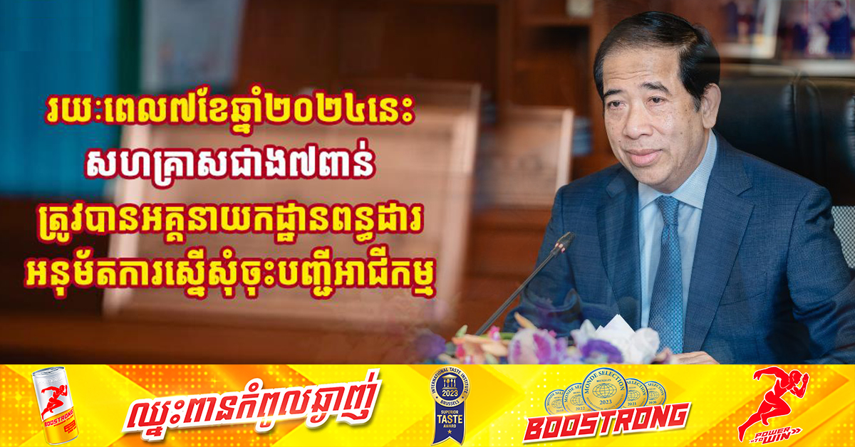 (ភ្នំពេញ)៖ រយៈពេល ៧ខែ ចាប់ពីខែមករា ដល់ខែកក្កដា ឆ្នាំ២០២៤ សហគ្រាសចំនួន ៧ ៣៤២ បានមកចុះបញ្ជីនៅអគ្គនាយកដ្ឋានពន្ធដារ ក្នុងនោះ ការចុះបញ្ជីតាមថ្នាល CamDX មានចំនួន ៥ ៧៤៧ សហគ្រាស។ នេះបើយោងតាមរបាយការណ៍របស់អគ្គនាយកដ្ឋានពន្ធដារ ដែលបណ្តាញព័ត៌មាន Fresh News ទទួលបាន។ ចំណែកនៅក្នុងកក្កដា អគ្គនាយកដ្ឋានពន្ធដារ បានពិនិត្យនិងអនុម័តការស្នើសុំចុះបញ្ជីពន្ធដារ បានចំនួន ១ ១៩៩ សហគ្រាស ក្នុងនោះតាមថ្នាល CamDX ចំនួន ៩៦៣ សហគ្រាស។