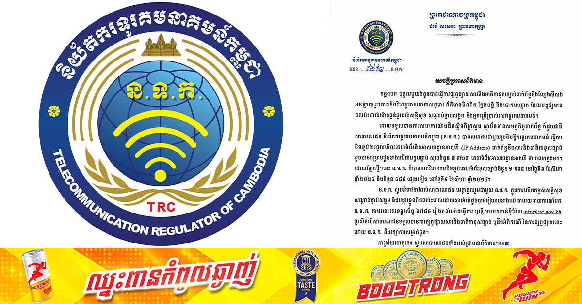 (ភ្នំពេញ)៖ កន្លងមកបុគ្គលមួយចំនួនបានធ្វើការផ្សព្វផ្សាយសារ និងមាតិកាខុសច្បាប់ពាក់ព័ន្ធនឹងល្បែងស៊ីសងអនឡាញ រូបភាពនិងវីដេអូអាសអាភាសកុមារ ព័ត៌មានមិនពិត ក្លែងបន្លំ និងបោកបញ្ឆោត ដែលបង្កឲ្យមានផលប៉ះពាល់យ៉ាងធ្ងន់ធ្ងរដល់សន្ដិសុខ សណ្ដាប់ធ្នាប់សង្គម និងអ្នកប្រើប្រាស់សេវាទូរគមនាគមន៍។ ដោយទទួលបានការសហការយ៉ាងជិតស្និទពីក្រសួង ស្ថាប័នមានសមត្ថកិច្ចពាក់ព័ន្ធ ក៏ដូចជាពីសាធារណជន និយ័តករទូរគមនាគមន៍កម្ពុជា (ន.ទ.ក.) បានសហការជាមួយប្រតិបត្តិករទូរគមនាគមន៍ ធ្វើការបិទខ្ទប់ការចូលមើល គេហទំព័រ និងអាសយដ្ឋានអាយភី (IP Address) ពាក់ព័ន្ធនឹងសារនិងមាតិកាខុសច្បាប់ដូចបានជម្រាបជូនខាងលើជាបន្តបន្ទាប់ សរុបចំនួន ៧,៣២៣គេហទំព័រ /អាសយដ្ឋានអាយភី នាពេលកន្លងមក។ ដោយឡែកថ្មីៗនេះ ន.ទ.ក. ក៏បានចាត់វិធានការបិទខ្ទប់គេហទំព័រខុសច្បាប់ចំនួន ១,៩៦៥ នៅថ្ងៃទី៦ ខែសីហាឆ្នាំ២០២៤ និងចំនួន៤៨៩ផ្សេងទៀត នៅថ្ងៃទី៩ ខែសីហា