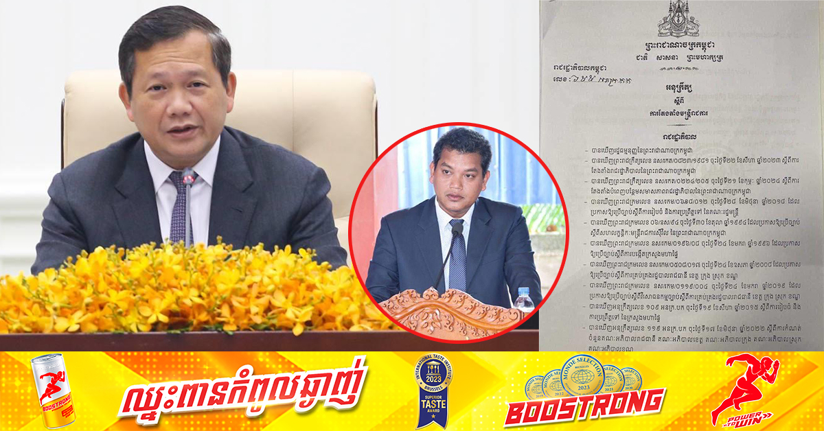 (ភ្នំពេញ)៖ សម្ដេចមហាបវរធិបតី ហ៊ុន ម៉ាណែត នាយករដ្ឋមន្ដ្រីនៃកម្ពុជា បានចេញអនុក្រឹត្យតែងតាំង លោក នូ សុវណ្ណរិទ្ធ ជាអភិបាលស្រុកអង្គស្នួល ខេត្តកណ្ដាល។ នេះបើតាមអនុក្រឹត្យដែលបណ្ដាញព័ត៌មាន Fresh News ទទួលបាននៅថ្ងៃទី១៦ ខែកក្កដា ឆ្នាំ២០២៤។ សូមជម្រាបថា លោក នូ សុវណ្ណរិទ្ធ មានឋានន្ដរស័ក្ដិវរមន្ដ្រី ថ្នាក់លេខ១៕ ខាងក្រោមនេះ ជាអនុក្រឹត្យរបស់សម្ដេចធិបតី ហ៊ុន ម៉ាណែត៖ ផ្ដល់សិទ្ធិដោយ៖ Fresh News