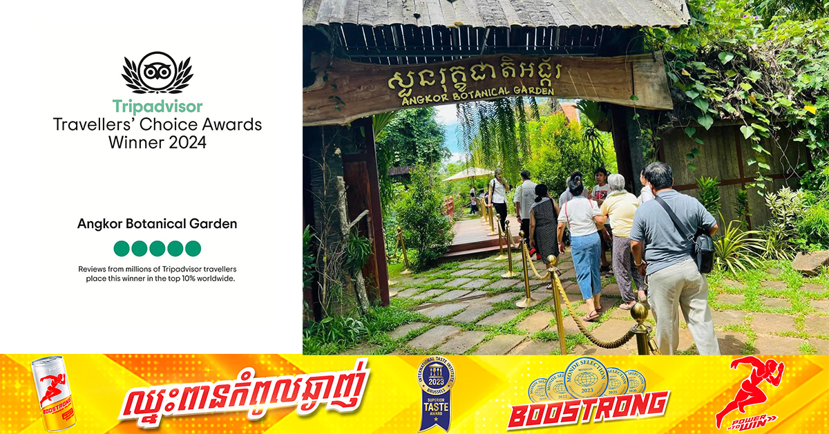 (សៀមរាប)៖ សួនរុក្ខជាតិអង្គរ នៅខេត្តសៀមរាប ដែលគ្រប់គ្រងដោយអាជ្ញាធរជាតិអប្សរា ទទួលបានពាន Travellers’ Choice Awards 2024 ជាលើកដំបូងពី TripAdvisor ដែលជាគេហទំព័រទេសចរណ៍លំដាប់ពិភពលោក។ សូមជម្រាបថា សួនរុក្ខជាតិអង្គរ ដំបូងឡើយមានឈ្មោះថា «សួនគ្រឿងទេស» បង្កើតឡើងពីឆ្នាំ២០០៥ ដែលកាលណោះមានផ្ទៃដីប្រមាណ ២ហិកតាប៉ុណ្ណោះ។ ចាប់ពីឆ្នាំ២០១៨មក សួននេះត្រូវបានរៀបចំកែលម្អនិ ងពង្រីករហូតដល់ជាង ១៥ហិកតា ក្រោមការឧបត្ថម្ភ និងគំនិតផ្តួចផ្តើមរបស់លោក ជា សុផារ៉ា អតីតឧបនាយករដ្ឋមន្រ្តី ក្នុងគោលបំណងចង់ឃើញសួនមានភាពទាក់ទាញ និងសក្តានុពលខ្លាំងជាងមុន សម្រាប់ឱ្យប្រជាជន និងទេសចរចូលកម្សាន្ត។ នាថ្ងៃទី១៩ ខែឧសភា ឆ្នាំ២០២២ សួនរុក្ខជាតិអង្គរដែលមានទំហំផ្ទៃដីជាង ១៥ហិកតា