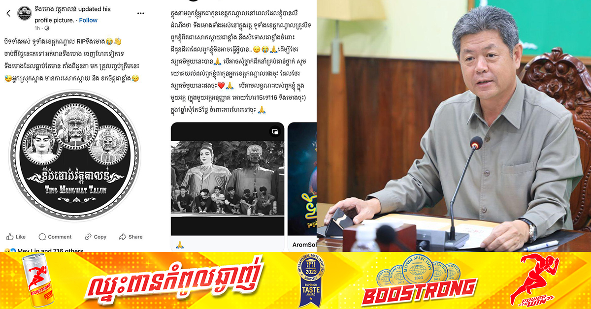 (កណ្តាល)៖ លោក គួច ចំរើន អភិបាលខេត្តកណ្តាល នៅព្រឹកថ្ងៃទី១២ ខែកក្កដា ឆ្នាំ២០២៤នេះ បានចេញមកអះអាងថា អាជ្ញាធរមិនមានបិទ មិនឱ្យសម្តែងទីងមោងទេ។ ជាមួយគ្នានេះ លោកអភិបាល បានស្នើរៀបចំឱ្យមានសណ្តាប់ធ្នាប់ល្អ រក្សាបានគុណតម្លៃសិល្បៈវប្បធម៌ខ្មែរ។ លោក គួច ចំរើន បានសរសេរលើ Facebook របស់លោកថា «ខ្ញុំបានឃើញការផ្សព្វផ្សាយ អំពីទីងមោង ថាត្រូវបានបិទ។ ខ្ញុំសូមបញ្ជាក់ថា ពុំមានការបិទទេ ហើយស្នើសុំអោយរៀបចំ ដោយមានសណ្តាប់ធ្នាប់ល្អ រក្សាបាន គុណតម្លៃសិល្បៈវប្បធម៌ខ្មែរយើង។ ខ្ញុំនឹងជួបជាមួយបងប្អូនផ្ទាល់នៅពេលខាងមុខ»។ សូមជម្រាបថា ប៉ុន្មានថ្ងៃនេះមានការផ្ទុះនូវការផ្សព្វផ្សាយលើបណ្តាញសង្គមថា មានការណែនាំឱ្យបិទការសម្តែងទីងមោងរបស់បងប្អូន នៅខេត្តកណ្តាល ទើបធ្វើឱ្យមហាជនមានការងឿងឆ្ងល់ តែពេលនេះអភិបាលខេត្ត