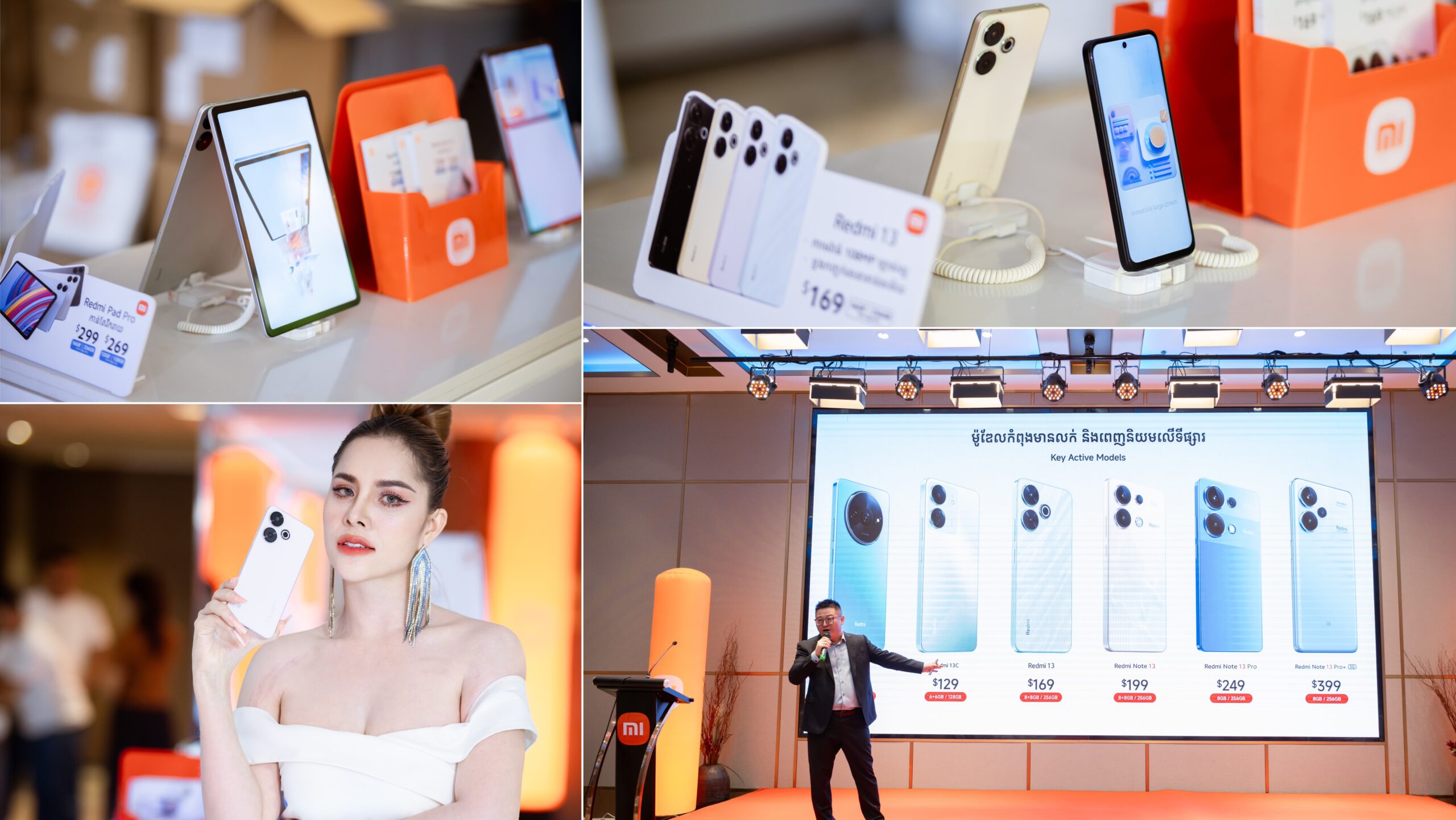 នៅសណ្ឋាគារ Orkwood Premier ភ្នំពេញ: នៅថ្ងៃទី 15 មិថុនា ឆ្នាំ 2023 គឺជាថ្ងៃដែលអ្នកគាំទ្រទូរសព្ទត្រកូល Redmi បានទន្ទឹងរង់ចាំអស់ពេលជាយូរមកហើយ នោះគឺជាការបង្ហាញនូវសមាជិកចុងក្រោយគេបង្អស់នៃត្រកូល Redmi នោះគឺ Redmi 13 ជាមួយនឹងមុខងារពិសេសជាងមុន រូបរាងដ៏ប្រណីតទាក់ចិត្តអ្នកប្រើប្រាស់ ដោយភ្ជាប់ជាមួយកាម៉េរ៉ាទំហំ 108 MP ធ្វើអោយការថតរូប និង វីដេអូ មានគុណភាពត្រជាក់ភ្នែក និង ស្រស់ស្អាត។ ជាមួយមុខងារដ៏អស្ចារ្យ Redmi 13 ពិតជាសាកសមជាមួយនឹងអ្នកប្រើប្រាស់ដែលចូលចិត្ត ថតរូប ផលិតមាតិការក្នុងប្រព័ន្ធសង្គម