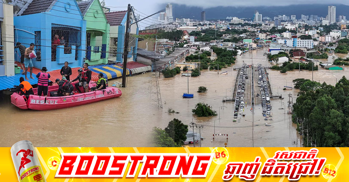 (បាងកក)៖ នៅថ្ងៃពុធនេះ រដ្ឋាភិបាលថៃ បានឱ្យដឹងថា គ្រោះមហន្តរាយទឹកជំនន់ដ៏កាចសាហាវបំផុតមួយ ដែលបាននិងកំពុងវាយប្រហារលើតំបន់ភាគខាងត្បូងប្រទេស អស់រយៈពេលប៉ុន្មានថ្ងៃមកនេះ បានផ្តាច់ជីវិតមនុស្សកើនដល់យ៉ាងហោច ៣៣នាក់ហើយ។ នេះបើតាមការចេញផ្សាយដោយ ទីភ្នាក់ងារព័ត៌មាន AFP នាថ្ងៃពុធ ទី២៦ ខែវិច្ឆិកា ឆ្នាំ២០២៥។ អ្នកនាំពាក្យរដ្ឋាភិបាលថៃ លោក Siripong Angkasakulkiat បានប្រាប់អ្នកសារព័ត៌មានថា ខាងអាជ្ញាធរបានរាយការណ៍ថា មនុស្សសរុបចំនួន៣៣នាក់ បានស្លាប់នៅទូទាំងខេត្តចំនួន៧ ដោយសារមូលហេតុ ដូចជាត្រូវទឹកហូរនាំយកទៅ ឆក់ចរន្តអគ្គិសនី និងលង់ទឹក ជាដើម។ គួរបញ្ជាក់ថា រដ្ឋាភិបាលថៃ បានប្រកាសដាក់ខេត្ត Songkhla ទាំងមូល ក្រោមភាពអាសន្ន