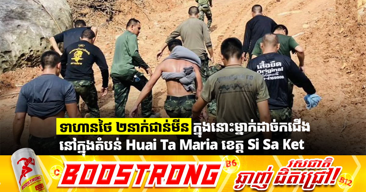 (បាងកក)៖ ទាហានថៃ២នាក់ បានដើរជាន់មីននៅក្នុងតំបន់ Huai Ta Maria ខេត្ត Si Sa Ket ដោយបណ្ដាលឱ្យទាហានម្នាក់ដាច់កជើង និងម្នាក់រងរបួស។ ឧបទ្ទវហេតុនេះបានកើតឡើងនៅក្នុងតំបន់ Huai Ta Maria នៃខេត្ត Si Sa Ket ដែលស្ថិតនៅក្រោមគ្រប់គ្រងរបស់ទីបញ្ជាការភូមិភាគ២។ ទាហានទាំង ២នាក់ត្រូវបានបញ្ជូនទៅកាន់មន្ទីរពេទ្យ។ នេះបើតាមកាសែតថៃ Khaosod៕ ផ្ដល់សិទ្ធិដោយ៖ Fresh News