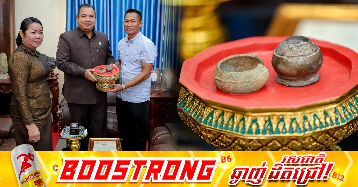 (ស្ទឹងត្រែង)៖ វត្ថុបុរាណពីរប្រភេទ ដែលគេប៉ាន់ប្រមាណថាមានតម្លៃខ្ពស់ ត្រូវបានប្រជាពលរដ្ឋមួយគ្រួសារ ប្រទះឃើញនៅលើដីចំការផ្ទាល់ខ្លួន ហើយបាននាំយកមករក្សាទុកមិនតិចជាង ៧ឆ្នាំនោះទេ ប៉ុន្តែនៅថ្ងៃទី២០ ខែតុលា ឆ្នាំ២០២៥ បាននាំយកមកប្រគល់ជូន លោក សរ សុពុត្រា អភិបាលខេត្តស្ទឹងត្រែង ក្រោមទំនុកចិត្តខ្ពស់បំផុត ដើម្បីនាំយកទៅថែរក្សាទុកជាកេរ្តិ៍មរតកវប្បធម៌ដ៏មានតម្លៃរបស់ជាតិ។ ពលរដ្ឋល្អដែលបាននាំយកវត្ថុបុរាណដ៏មានតម្លៃទាំងពីរ គឺ «តុម្ព និងកង» ទៅប្រគល់ជូនអាជ្ញាធរខេត្តស្ទឹងត្រែង ឈ្មោះ ជាប ចាប ភេទប្រុស រស់នៅភូមិរាជានុកូល សង្កាត់ស្ទឹងត្រែង ក្រុងស្ទឹងត្រែង។ វត្ថុបុរាណទាំងពីរប្រភេទនេះ បើតាមការប៉ាន់ប្រមាណ អាចមានអាយុកាលជាច្រើនសតវត្សរ៍កន្លងមកហើយ ដែលបានកប់ក្រោមដី និងត្រូវបានប្រជាពលរដ្ឋប្រទះឃើញ នៅអំឡុងឆ្នាំ២០១៩ នៅលើដីចំការ ស្ថិតក្នុងភូមិអូរពងមាន់២