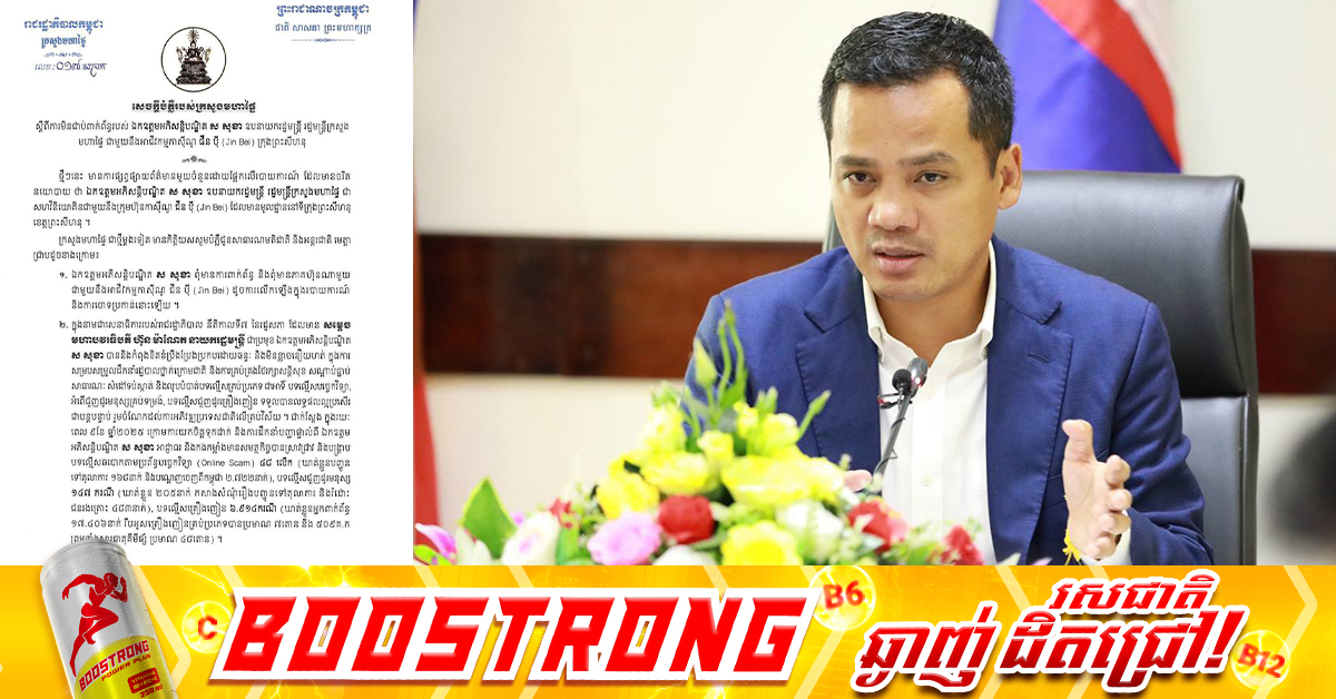 (ភ្នំពេញ)៖ ថ្មីៗនេះមានការផ្សព្វផ្សាយព័ត៌មានមួយចំនួនដោយផ្អែកលើរបាយការណ៍ដែលមានចរិតនយោបាយថាអភិសន្តិបណ្ឌិត ស សុខា ឧបនាយករដ្ឋមន្ត្រី រដ្ឋមន្ត្រីក្រសួងមហាផ្ទៃ ជាសហវិនិយោគិនជាមួយនឹងក្រុមហ៊ុនកាស៊ីណូ ជីន ប៉ី (Jin Bei) ដែលមានមូលដ្ឋាននៅទីក្រុងព្រះសីហនុ ខេត្តព្រះសីហនុ។ ក្រសួងមហាផ្ទៃ ជាថ្មីម្តងទៀតសូមបំភ្លឺជូនសាធារណមតិជាតិ និងអន្តរជាតិមេត្តាជ្រាបដូចខាងក្រោម៖ ទី១៖ អភិសន្តិបណ្ឌិត ស សុខា ពុំមានការពាក់ព័ន្ធ និងពុំមានភាគហ៊ុនណាមួយជាមួយនឹងអាជីវកម្មកាស៊ីណូ ជីន ប៉ី (Jin Bei) ដូចការលើកឡើងក្នុងរបាយការណ៍ និងការចោទប្រកាន់នោះឡើយ។ ទី២៖ ក្នុងនាមជាសេនាធិការរបស់រាជរដ្ឋាភិបាល នីតិកាលទី៧ នៃរដ្ឋសភា ដែលមានសម្តេចមហាបវរធិបតី ហ៊ុន ម៉ាណែត