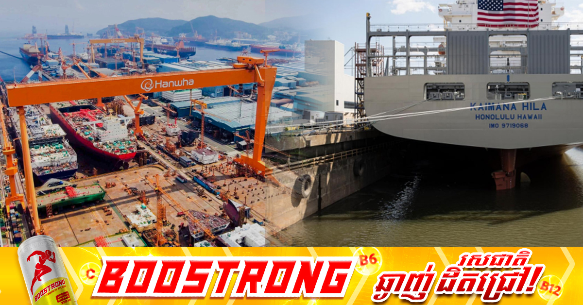 (សេអ៊ូល)៖ ក្រុមន្ត្រីកូរ៉េខាងត្បូង បានឱ្យដឹងនៅថ្ងៃសុក្រ ទី១៧ ខែតុលានេះថា ទណ្ឌកម្មរបស់ចិនលើក្រុមហ៊ុនសាងសង់នាវា Hanwha Ocean របស់កូរ៉េខាងត្បូង បានគំរាមកំហែងដល់ផែនការប្រកបដោយមហិច្ឆតា នៃកិច្ចសហប្រតិបត្តិការសាងសង់នាវា រវាងទីក្រុងសេអ៊ូល និងទីក្រុងវ៉ាស៉ីនតោន តាមរយៈឧបករណ៍ និងសម្ភារៈផ្គត់ផ្គង់ដែលយកមកពីចិន។ នេះបើយោងតាមការចេញផ្សាយដោយទីភ្នាក់ងារសារព័ត៌មាន Reuters។ កូរ៉េខាងត្បូង បានប្តេជ្ញាធ្វើឱ្យការសាងសង់នាវារបស់អាមេរិកអស្ចារ្យម្តងទៀត ជាមួយការសន្យាវិនិយោគ ១៥០ពាន់លានដុល្លារក្នុងវិស័យនេះ ដើម្បីជួយដល់គោលដៅជំរុញរបស់ ប្រធានាធិបតីអាមេរិក លោក ដូណាល់ ត្រាំ ក្នុងការធ្វើឱ្យនាវាអាមេរិករស់រវើកឡើងវិញ តាមឱ្យទាន់ចិន។ រដ្ឋមន្ត្រីទទួលបន្ទុកកម្មវិធីលទ្ធកម្មនៃក្រសួងការពារជាតិកូរ៉េខាងត្បូង លោក Seok Jong-gun បានប្រាប់គណៈកម្មការសភាថា «ខ្ញុំមិនឃើញថា យើងអាចផលិតសម្ភារៈ ហើយផ្គត់ផ្គង់ដល់ក្រុមហ៊ុនសាងសង់នាវា