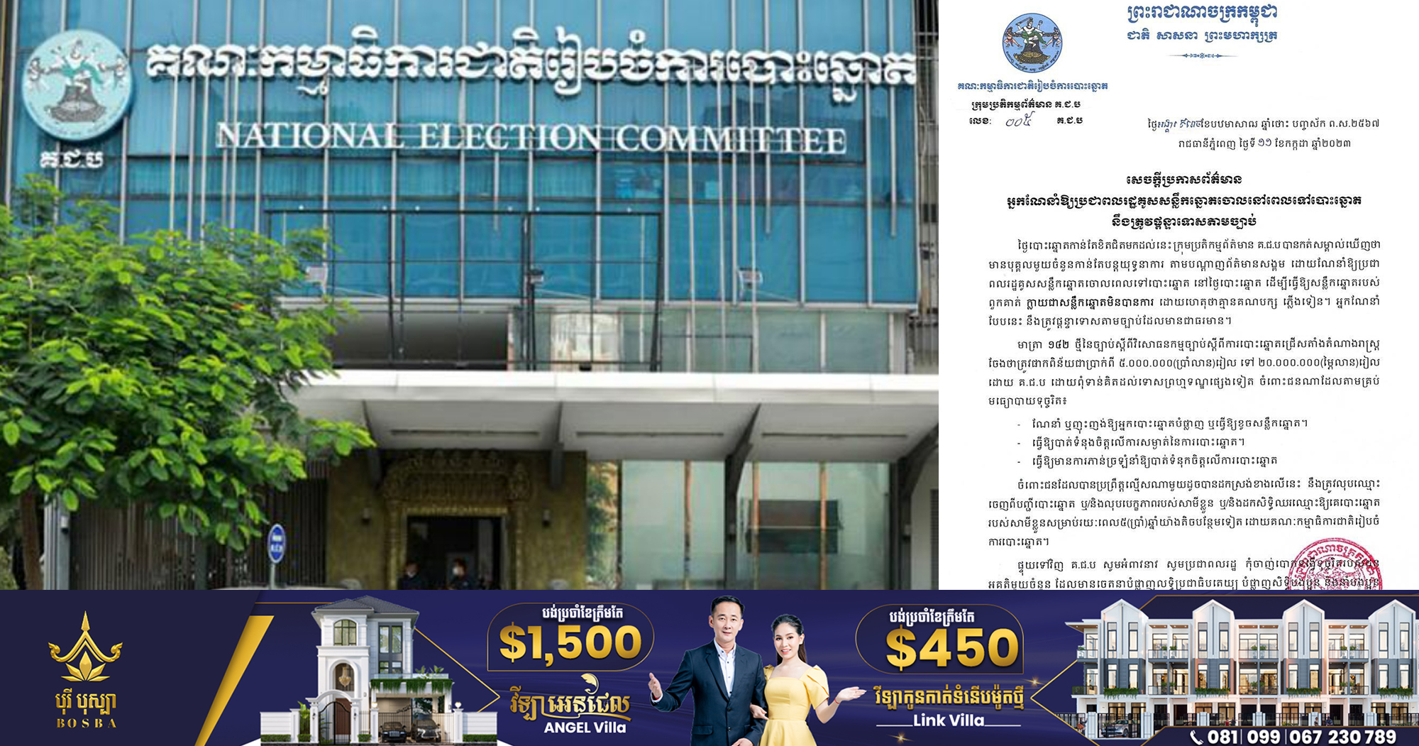 (ភ្នំពេញ)៖ គណៈកម្មាធិការជាតិរៀបចំការបោះឆ្នោត (គ.ជ.ប) បានឲ្យដឹងថា ថ្ងៃបោះឆ្នោតកាន់តែខិតជិតមកដល់នេះក្រុមប្រតិកម្មព័ត៌មាន គ.ជ.ប បានកត់សម្គាល់ឃើញថាមានបុគ្គលមួយចំនួនកាន់តែបន្តយុទ្ធនាការ តាមបណ្ដាញព័ត៌មានសង្គម ដោយណែនាំឲ្យប្រជាពលរដ្ឋគូសសន្លឹកឆ្នោតចោលពេលទៅបោះឆ្នោត នៅថ្ងៃបោះឆ្នោត ដើម្បីធ្វើឲ្យសន្លឹកឆ្នោតរបស់ពួកគាត់ ក្លាយជាសន្លឹកឆ្នោតមិនបានការ ដោយហេតុថាគ្មានគណបក្សភ្លើងទៀន។ អ្នកណែនាំបែបនេះ នឹងត្រូវផ្តន្ទាទោសតាមច្បាប់ដែលមានជាធរមាន។ ក្នុងសេចក្ដីប្រកាសព័ត៌មាន ដែលបណ្ដាញព័ត៌មាន Fresh News ទទួលបាននៅព្រឹកថ្ងៃទី១១ ខែកក្កដា ឆ្នាំ២០២៣នេះ គ.ជ.ប បានបញ្ជាក់ថា មាត្រា១៤២ថ្មី នៃច្បាប់ស្តីពីវិសោធនកម្មច្បាប់ស្តីពីការបោះឆ្នោតជ្រើសតាំងតំណាងរាស្ដ្រ ចែងថា ត្រូវផាកពិន័យជាប្រាក់ពី ៥,០០០,០០០ (ប្រាំលាន) រៀល ទៅ២០,០០០,០០០ (ម្ភៃលាន) រៀលដោយ គ.ជ.ប ដោយពុំទាន់គិតដល់ទោសព្រហ្មទណ្ឌផ្សេងទៀត ចំពោះជនណាដែលតាមគ្រប់មធ្យោបាយទុច្ចរិត៖ * ណែនាំ ឬញុះញង់ឲ្យអ្នកបោះឆ្នោតបំផ្លាញ ឬធ្វើឲ្យខូចសន្លឹកឆ្នោត * ធ្វើឲ្យបាត់ទំនុងចិត្តលើការសម្ងាត់នៃការបោះឆ្នោត * ធ្វើឲ្យមានការភាន់ច្រឡំនាំឲ្យបាត់ទំនុកចិត្តលើការបោះឆ្នោត។ បើតាមគ.ជ.ប, ចំពោះជនដែលបានប្រព្រឹត្តល្មើសណាមួយដូចបានដកស្រង់ខាងលើនេះ នឹងត្រូវលុបឈ្មោះចេញពីបញ្ជីបោះឆ្នោត ឬ/និងលុបបេក្ខភាពរបស់សាមីខ្លួន ឬ/និងដកសិទ្ធិឈរឈ្មោះឲ្យគេបោះឆ្នោតរបស់សាមីខ្លួនសម្រាប់រយៈពេល៥(ប្រាំ)ឆ្នាំ យ៉ាងតិចបន្ថែមទៀត ដោយគណៈកម្មាធិការជាតិរៀបចំការបោះឆ្នោត។ ផ្ទុយទៅវិញ គ.ជ.ប សូមអំពាវនាវ […]