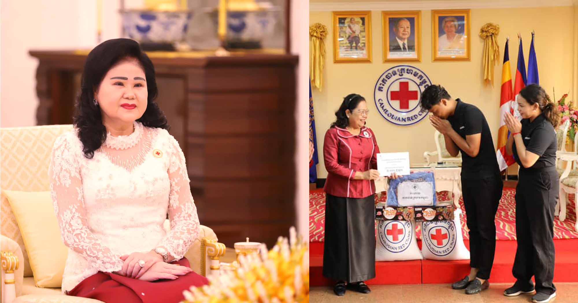 នៅព្រឹកថ្ងៃទី២៦ ខែមិថុនា ឆ្នាំ២០២៤នេះ សម្តេចកិត្តិព្រឹទ្ធបណ្ឌិត ប៊ុន រ៉ានី ហ៊ុនសែន ប្រធានកាកបាទក្រហមកម្ពុជា បានចាត់ឱ្យលោកជំទាវ ម៉ែន នារីសោភ័គ អគ្គលេខាធិការរងទី១ កាកបាទក្រហមកម្ពុជា និងសហការី ជួបសំណេះសំណាលសួរសុខទុក្ខ និងផ្តល់អំណោយមនុស្សធម៌រួមមានគ្រឿងឧបភោគបរិភោគ សម្ភារប្រើប្រាស់ និងថវិកាចំនួន ២.០០០ដុល្លារអាម៉េរិក ជូនដល់យុវជន ហុង វិទ្ធារក្ស អាយុ២៤ឆ្នាំ បុគ្គលិកក្រុមហ៊ុន Stellar Pictures ដែលបានទទួលរងរបួសស្រាលក្នុងករណីឃាតកម្មបាញ់ប្រហារកាលពីរសៀលថ្ងៃទី១៧ ខែមិថុនា ឆ្នាំ២០២៤កន្លងទៅ។ គួររំលឹកថា យុវជនម្នាក់ទៀតឈ្មោះ សុខុម ចរណ ដែលរងរបួសធ្ងន់ធ្ងរ
