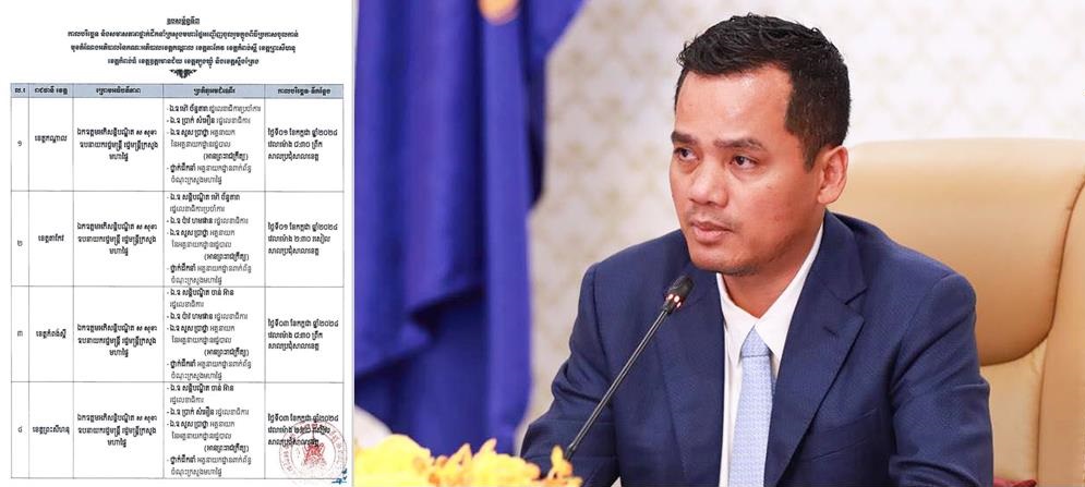 (ភ្នំពេញ)៖ លោកអភិសន្ដិបណ្ឌិត ស សុខា ឧបនាយករដ្ឋមន្ដ្រី រដ្ឋមន្ដ្រីក្រសួងមហាផ្ទៃ នឹងអញ្ជើញជាអធិបតីភាពពិធីប្រកាសចូលកាន់តំណែងអភិបាលខេត្តទាំង៨ ដែលទើបត្រូវបានព្រះមហាក្សត្រ ចេញព្រះរាជក្រឹត្យផ្ទេរភារកិច្ច និងតែងតាំងថ្មី។ ក្នុងលិខិតរបស់ក្រសួងមហាផ្ទៃ ដែលបណ្ដាញព័ត៌មាន Fresh News ទទួលបាននៅថ្ងៃទី២៥ ខែមិថុនា ឆ្នាំ២០២៤នេះ បានឲ្យដឹងថា កាលបរិច្ឆេទនៃការប្រកាសចូលកាន់មុខតំណែងអភិបាលខេត្ត ចំនួន៨រូបនេះ នឹងចាប់ផ្ដើមពីថ្ងៃទី០១ ខែកក្កដា ឆ្នាំ២០២៤តទៅ។ ក្នុងនោះរួមមាន៖ *ថ្ងៃទី០១ ខែកក្កដា៖ ព្រឹកនៅខេត្តកណ្ដាល និងពេលរសៀលនៅខេត្តតាកែវ*ថ្ងៃទី០៣ ខែកក្កដា៖ ព្រឹកនៅកំពង់ស្ពឺ និងរសៀលនៅខេត្តព្រះសីហនុ*ថ្ងៃទី០៨ ខែកក្កដា៖ ព្រឹកនៅខេត្តកំពង់ធំ និងរសៀលនៅខេត្តឧត្តរមានជ័យ*ថ្ងៃទី១១ ខែកក្កដា៖