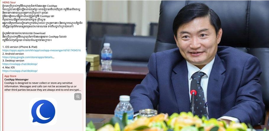 (ភ្នំពេញ)៖ លោក ហេង សួរ រដ្ឋមន្រ្តីក្រសួងការងារ និងបណ្ដុះបណ្ដាលវិជ្ជាជីវៈ បានប្រកាសគាំទ្រយ៉ាងពេញទំហឹង និងប្រើប្រាស់ CoolApp ដែលបង្កើតឡើងដោយស្នាដៃកូនខ្មែរ ហើយលោកអះអាងថានឹងបង្កើតគណនីផ្សេងៗទៀតសម្រាប់អង្គភាពក្រោមចំណុះក្រសួងការងារ។ លោក ហេង សួរ បានសរសេរៀបរាប់នៅលើតាមបណ្តាញសង្គមផ្លូវការរបស់ខ្លួនថា «ខ្ញុំបានប្រើប្រាស់កម្មវិធីបណ្តាញទំនាក់ទំនងសង្គម CoolApp ដែលត្រូវបានបង្កើតឡើងដោយកូនខ្មែរ ដោយខ្ញុំបានមើលឃើញថា កម្មវិធីនេះពិតជាល្អ និងមានភាពងាយស្រួលក្នុងការប្រើប្រាស់ ដូចនេះខ្ញុំនឹងបង្កើតគណនីផ្លូវការរបស់ខ្ញុំក្នុងកម្មវិធី CoolApp នេះ ក៏ដូចជាគណនីផ្លូវការរបស់នាយកដ្ឋាន គ្រឹះស្ថាន អង្គភាពនីមួយៗដែលស្ថិតនៅក្រោមចំណុះរបស់ ក្រសួងការងារ និងបណ្តុះបណ្តាលវិជ្ជាជីវៈ ដើម្បីផ្តល់នូវព័ត៌មានផ្សេងៗជូនដល់សាធារណជន ចាប់ពីសប្តាហ៍ក្រោយតទៅ»។ កាលពីពេលថ្មីៗនេះ បន្ទាប់ពី CoolApp បណ្តាញសង្គមកម្ពុជា ដែលមានស្តង់ដារអន្តរជាតិ