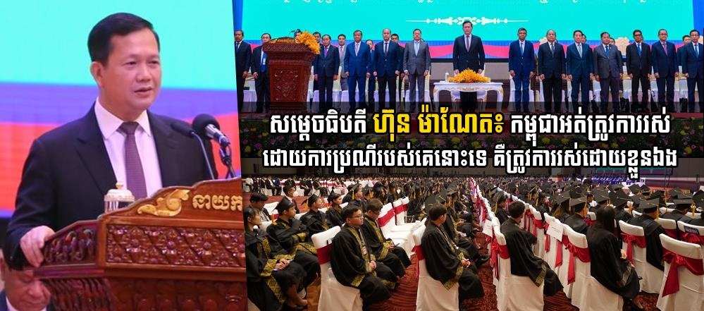(ភ្នំពេញ)៖ សម្តេចធិបតី ហ៊ុន ម៉ាណែត នាយករដ្ឋមន្រ្តីនៃកម្ពុជា បានលើកឡើងថា កម្ពុជាមិនត្រូវការរស់ដោយការអនុគ្រោះ ឬប្រណីរបស់នរណានោះទេ តែកម្ពុជាបានខិតខំប្រឹងរស់ដោយខ្លួនឯង។ សម្តេចធិបតី ហ៊ុន ម៉ាណែត បានលើកឡើងបែបនេះ ក្នុងឱកាសដែលសម្តេចចូលរួមពិធីប្រគល់សញ្ញាបបត្រជូនដល់និស្សិត នៃសាកលវិទ្យាល័យ លីមកុកវីង នាព្រឹកថ្ងៃទី១៣ ខែមិថុនា ឆ្នាំ២០២៤នេះ។ សម្តេចបានលើកឡើងថា ប្រទេសកម្ពុជា បានចាកចេញពីប្រទេសអភិវឌ្ឍតិច កាលពីឆ្នាំ២០១៩ ដែលកន្លងទៅ នៅពេលកម្ពុជានៅជាប្រទេសអភិវឌ្ឍតិច យើងនៅមានផលប្រយោជន៍មួយចំនួន ក្នុងនោះមានដូចជាការអនុគ្រោះ ការផ្តល់ប្រាក់កម្ចីជាដើម ហើយនៅពេលដែលយើងចាកចេញពីប្រទេសក្រីក្រ គឺគោលការណ៍មួយចំនួន ត្រូវបានដកចេញ ហើយអ្នកខ្លះបានសួរថា ហេតុអ្វីបានជាចាកចេញ ព្រោះអាចនឹងបាត់បង់ផលប្រយោជន៍មួយចំនួនពីការអនុគ្រោះ? សម្តេចបានបញ្ជាក់ដូច្នេះថា៖ «អត់ទេ