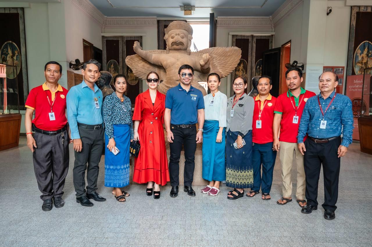 (ភ្នំពេញ)៖ លោក ម៉ានី ផាកគីអាវ (Manny Pacquiao) កំពូលកីឡាករប្រដាល់ និងជាអតីតសមាជិកព្រឹទ្ធសភានៃប្រទេសហ្វីលីពីន និងភរិយារបស់លោក នៅថ្ងៃទី៣១ ខែឧសភា ឆ្នាំ២០២៤ បានអញ្ជើញចូល ទស្សនាសារមន្ទីរជាតិ ក្នុងគោលបំណងសិក្សាស្វែងយល់អំពីសិល្បៈសម្បត្តិវប្បធម៌របស់កម្ពុជា ដែលបានរក្សាទុកនៅក្នុងសារមន្ទីរជាតិ។ សូមបញ្ជាក់ថា លោក ម៉ានី ផាកគីអាវ បានអញ្ជើញមកដល់កម្ពុជា និងបានចូលជួបសម្តែងការគួរសម និងពិភាក្សាការងារជាមួយសម្តេចបវរធិបតី ហ៊ុន ម៉ាណែត នាយករដ្ឋមន្ត្រីកម្ពុជា នៅវិមាន៧មករា កាលពីរសៀលថ្ងៃទី៣០ ខែឧសភា ឆ្នាំ២០២៤នេះផងដែរ។ Manny Pacquiao ធ្លាប់បានអញ្ជើញទស្សនកិច្ចនៅប្រទេសកម្ពុជាម្ដងមកហើយ កំឡុងអមដំណើរទស្សនកិច្ចផ្លូវការរបស់លោក Rodrigo