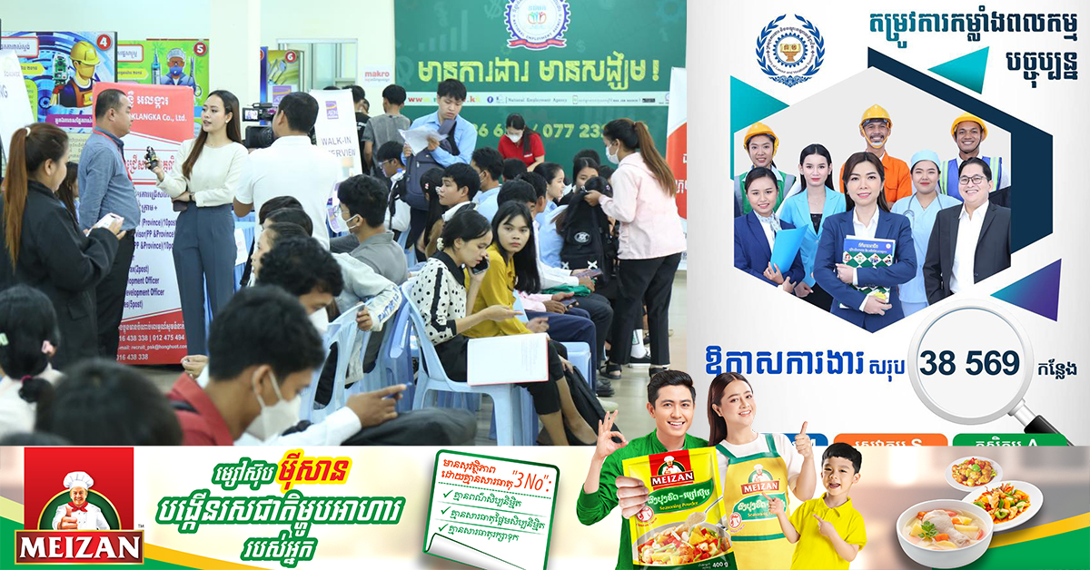 (ភ្នំពេញ)៖ ក្រសួងការងារ និងបណ្តុះបណ្តាលវិជ្ជាជីវៈ នៅថ្ងៃទី០៥ ខែធ្នូ ឆ្នាំ២០២៣នេះ បានប្រកាសថា បច្ចុប្បន្ននេះ បណ្តារាជធានី-ខេត្តមួយចំនួនរបស់កម្ពុជា កំពុងត្រូវការកម្លាំងពលកម្មចំនួន ៣៨,៥៦៩ កន្លែង សម្រាប់បម្រើឱ្យវិស័យចំនួន៣ គឺ វិស័យឧស្សាហកម្ម(M), វិស័យសេវាកម្ម (S) និងវិស័យកសិកម្ម (A)។ សូមជម្រាបដែរថា សម្រាប់បងប្អូនប្រជាពលរដ្ឋនៅទូទាំងប្រទេសដែលចង់ស្វែងរកការងារធ្វើ ឬផ្លាស់ប្តូរការងារ សូមទាក់ទងមកទីភ្នាក់ងារជាតិមុខរបរ និងការងារ (NEA) នៃក្រសួងការងារ និងបណ្តុះបណ្តាលវិជ្ជាជីវៈ តាមលេខទូរស័ព្ទ 077 23 23 78 ឬ 016