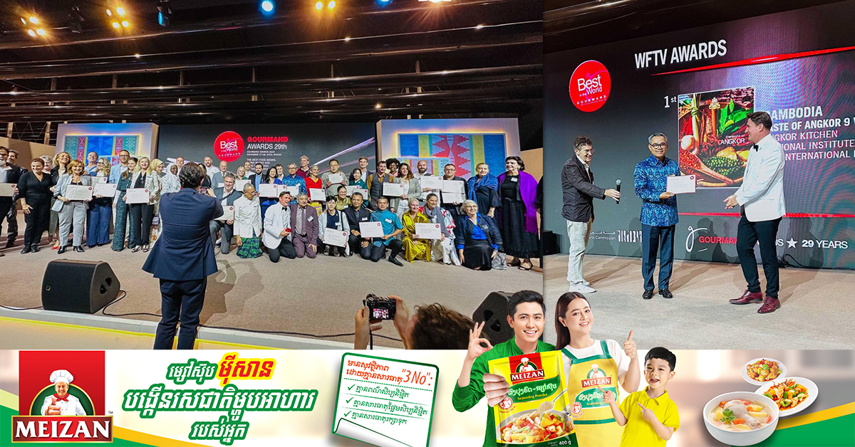 (ភ្នំពេញ)៖ សៀវភៅ «កេរដំណែលស្នាដៃម្ហូបខ្មែរ» (The Taste of Angkor) ដែលរៀបចំចងក្រង និងបោះពុម្ពផ្សាយដោយក្រសួងការបរទេស និងសហប្រតិបត្តិការអន្តរជាតិ និងជាផ្នែកមួយនៃការទូតអាហារ របស់ក្រសួងបានទទួលជ័យលាភីជាថ្មីម្តងទៀតគឺ «ពានរង្វាន់ទូរទស្សន៍ម្ហូបអាហារល្អដាច់គេលើពិភពលោក» (Best Television Awards in the World)» នៅក្នុងកម្មវិធីប្រកួតពានរង្វាន់សៀវភៅមុខម្ហូបពិភពលោក ប្រចាំឆ្នាំនេះ (The Gourmand World Cookbook Awards)។ នេះបើតាមសេចក្តីប្រកាសព័ត៌មាន ក្រសួងការបរទេស ដែលបណ្តាញព័ត៌មាន Fresh News ទទួលបាន។ កម្មវិធីប្រគល់រង្វាន់ បានប្រារព្ធធ្វើឡើងពីថ្ងៃទី២៧
