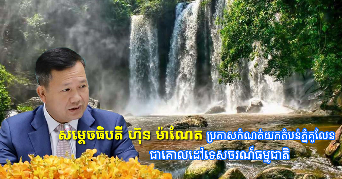 (ភ្នំពេញ)៖ សម្តេចធិបតី ហ៊ុន ម៉ាណែត នាយករដ្ឋមន្ត្រីនៃកម្ពុជា បានប្រកាសកំណត់យកភ្នំគូលែន ជាគោលដៅទេសចរណ៍ធម្មជាតិ។ ភ្នំគូលែន មានទីតាំងស្ថិតនៅក្នុងស្រុកស្វាយលើ ប៉ែកខាងកើត និងប៉ែកខាងជើង ស្រុកបន្ទាយស្រីនៅប៉ែកខាងត្បូង និងស្រុកវ៉ារិន នៅប៉ែកខាងលិច ហើយគ្របដណ្តប់លើឃុំចំនួន២ គឺឃុំខ្នងភ្នំនៃស្រុកស្វាយលើ និងឃុំឃុនរាម នៃស្រុកបន្ទាយស្រី។ ក្នុងឱកាសដែលសម្តេចបានអញ្ជើញជាអធិបតីនៃវេទិកា «រាជរដ្ឋាភិបាល-ផ្នែកឯកជន» លើកទី១៩ នៅថ្ងៃទី១៣ ខែវិច្ឆិកា ឆ្នាំ២០២៣នេះ សម្តេចធិបតី ហ៊ុន ម៉ាណែត បានថ្លែងយ៉ាងដូច្នេះថា៖ «ការបង្កើតខ្សែចង្វាក់បៃតង នៅតាមតំបន់ទេសចរណ៍សំខាន់ៗ ដើម្បីជំរុញការផ្គត់ផ្គង់បន្លែ សាច់ របស់ប្រជាកសិករ នៅមូលដ្ឋានអាជីវកម្មទេសចរណ៍