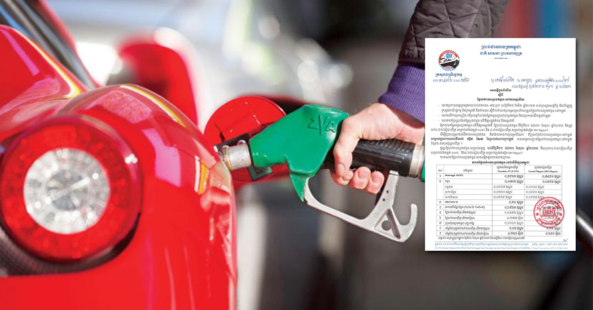 (ភ្នំពេញ)៖ ក្រសួងពាណិជ្ជកម្ម នៅថ្ងៃទី២១ ខែតុលា ឆ្នាំ២០២៣នេះ បានចេញសេចក្តីជូនដំណឹង ប្រកាសពីតម្លៃលក់រាយប្រេងឥន្ធនៈ នៅតាមស្ថានីយនានាដោយចាប់ពីថ្ងៃនេះ ដល់ថ្ងៃទី៣១ ខែតុលា ឆ្នាំ២០២៣ ត្រូវលក់សាំងធម្មតាតម្លៃ ៤,៣៥០រៀល និងម៉ាស៊ូតត្រូវលក់ ៤,៦៥០រៀល ក្នុង១លីត្រ៕ ផ្តល់សិទ្ធិដោយ៖ freshnews