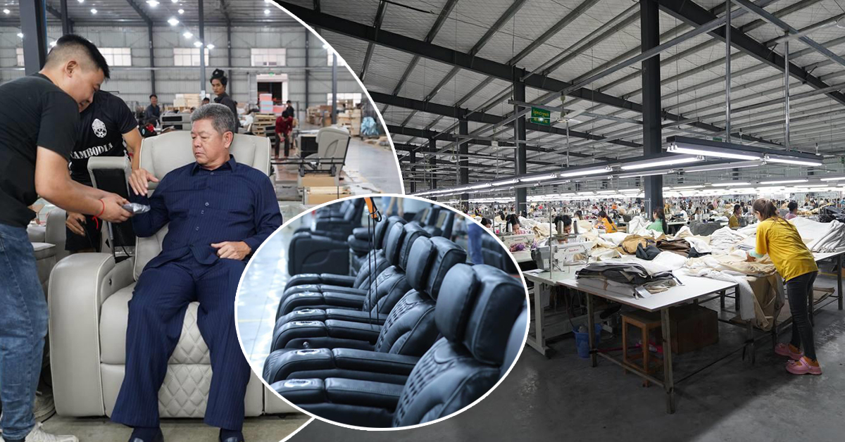 (ព្រះសីហនុ)៖ ក្រុមហ៊ុន ចេជាង ហូម ផញ (Zhejiang home Point Furniture) គឺជាក្រុមហ៊ុនផលិតគ្រឿងសង្ហារិមប្រណិតៗ សម្រាប់នាំចេញទៅក្រៅប្រទេស មានដូចជាសហរដ្ឋអាមេរិកជាដើម។ បច្ចុប្បន្នក្រុមហ៊ុនកំពុងបើករោងចក្រផលិតសាឡុង នៅតំបន់សេដ្ឋកិច្ចពិសេស ក្នុងស្រុកព្រៃនប់ ខេត្តកំពង់ព្រះសីហនុ។ រោងចក្រនេះ បានផលិតសាឡុងទំនើបៗមានតម្លៃរាប់ពាន់ដុល្លារ ហើយខ្លះទៀតចូលដល់ខ្ទង់ម៉ឺនដុល្លារថែមទៀតផង។ លោក ដារា អ្នកគ្រប់គ្រងផ្នែកផលិតនៅក្នុងរោងចក្រនេះ បានឱ្យដឹងថា រោងចក្របានដំណើរការនៅតំបន់សេដ្ឋកិច្ចពិសេសចេជាងរយៈពេលប្រមាណ ៤ឆ្នាំមកហើយ។ លោកបានឱ្យដឹងថា សាឡុងប្រណិតៗទាំងនេះ ត្រូវបានផលិតដោយកូនខ្មែរទាំងស្រុង ចាប់តាំងពីដំណាក់កាលចាប់ផ្តើម រហូតដល់សម្រេច រួមមានកាត់ ដេរ និងដំឡើង។ លោក