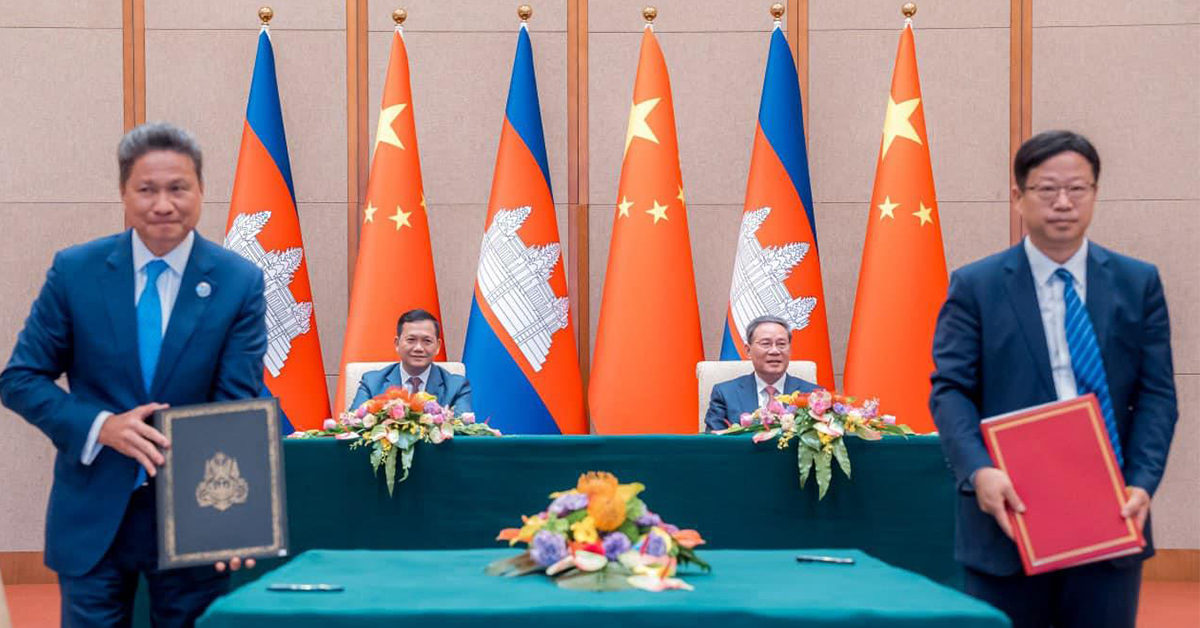 (ប៉េកាំង, ចិន)៖ ឯកសារដ៏មានសារៈសំខាន់ចំនួន៨ទៀត ពាក់ព័ន្ធការពង្រីកិច្ចសហប្រតិបត្តិការផ្នែកពាណិជ្ជកម្ម និងវិនិយោគ ត្រូវរាជរដ្ឋាភិបាលកម្ពុជា និងរដ្ឋាភិបាលចិន ចុះកិច្ចព្រមព្រៀងជាមួយគ្នា។ ការចុះកិច្ចព្រមព្រៀងនេះ ធ្វើឡើងក្រោមអធិបតីភាពសម្តេចមហាបវរធិបតី ហ៊ុន ម៉ាណែត នាយករដ្ឋមន្ត្រីកម្ពុជា និងលោក លី ឈាង នាយករដ្ឋមន្ត្រីចិន ក្រោយជំនួបទ្វេភាគីនៅល្ងាចថ្ងៃទី១៧ ខែតុលា ឆ្នាំ២០២៣នេះ។ ឯកសារដែលបានចុះកិច្ចព្រមព្រៀងនេះរួមមាន៖ ១៖ អនុស្សរណៈនៃការយោគយល់គ្នាស្តីពីការរួម គ្នាជំរុញគម្រោងគន្លឹះវង់ទី៣ សម្រាប់កិច្ច សហប្រតិបត្តិការសមត្ថភាពផលិត និងការវិនិយោគកម្ពុជា-ចិន ២៖ អនុស្សរណៈនៃការយោគយល់គ្នា ស្តីពីការបង្កើតយន្តការការងារសម្រាប់ការអនុវត្ត គម្រោងផែនការកិច្ចសហប្រតិបត្តិការទ្វេភាគី ដើម្បីរួមគ្នាកសាងខ្សែក្រវាត់សេដ្ឋកិច្ចផ្លូវ សូត្រ និងផ្លូវសូត្រសមុទ្រសតវត្សរ៍ទី២១
