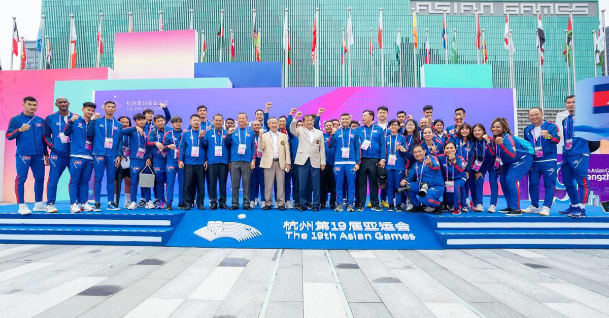 (ហាំងចូវ)៖ នៅព្រឹកថ្ងៃទី២២ ខែកញ្ញានេះ លោកបណ្ឌិត ថោង ខុន ទេសរដ្ឋមន្ដ្រី និងជាប្រធានគណៈកម្មាធិការជាតិអូឡាំពិកកម្ពុជា (NOCC) ក្នុងនាមប្រធានប្រតិភូកីឡាកម្ពុជា បានដឹកនាំគណៈប្រតិភូកីឡាកម្ពុជា អមដំណើរដោយលោក វ៉ាត់ ចំរើន រដ្ឋលេខាធិការក្រសួងអប់រំ យុវជន និងកីឡា និងជាអគ្គលេខាធិការ NOCC ចូលរួមពិធីបង្ហូតទង់ជាតិ នៅភូមិកីឡា ដើម្បីបញ្ជាក់ពីវត្តមាន ក៏ដូចជាការត្រៀមខ្លួនរួចរាល់ ក្នុងការចូលរួមប្រកួតកីឡាអាស៊ី (Asian Games) លើកទី១៩ នៅប្រទេសចិន ចាប់ពីថ្ងៃទី២៣ ខែកញ្ញា ដល់ថ្ងៃទី០៨ ខែតុលា ឆ្នាំ២០២៣ ។