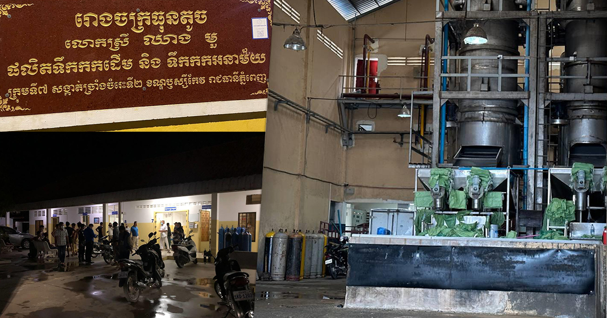 (ភ្នំពេញ)៖ នៅយប់ថ្ងៃទី០១ ខែកញ្ញា ឆ្នាំ២០២៣ មានករណីធ្លាយបំពង់ឧស្ម័នអាល់ម៉ូញាក់ ក្នុងរោងចក្រផលិតទឹកកក យីហោ «លោកស្រី ឈាង មួ» ដែលមានទីតាំងស្ថិតនៅផ្លូវបេតុង ក្រុមទី៥ ភូមិខ១ សង្កាត់ច្រាំងចំរេះទី២ ខណ្ឌឫស្សីកែវ រាជធានីភ្នំពេញ។ យោងតាមរបាយការណ៍របស់លោកឧត្តមសេនីយ៍ទោ ជួន ណារិន្ទ អគ្គស្នងការរង និងជាស្នងការនគរបាលរាជធានីភ្នំពេញ បានឲ្យដឹងថា ម្ចាស់ទីតាំងឈ្មោះ ឈាង ប៉ោ អាយុ៥៦ឆ្នាំ មានទីលំនៅចំណុចកើតហេតុ។ ក្នុងហេតុការណ៍នេះ បណ្តាលឲ្យប៉ះពាល់សុខភាពប្រជាពលរដ្ឋរស់នៅក្បែរ ទីតាំងកើតហេតុ ចំនួន២៣នាក់ ស្រី១៧នាក់ បញ្ជូនទៅសង្គ្រោះនៅមន្ទីរកាល់ម៉ែត និងមន្ទីរពេទ្យបង្អែកសម្តេចឪ