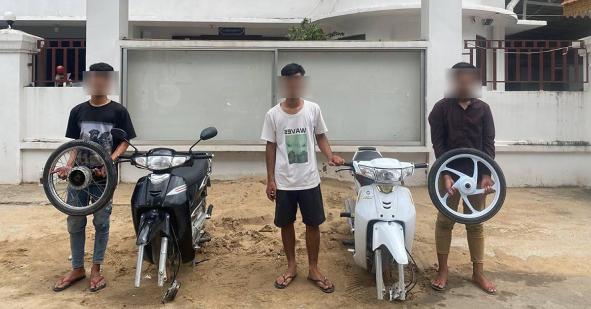 (ភ្នំពេញ)៖ យុវជន៣នាក់ ដែលបង្ហោះម៉ូតូតាមផ្លូវសាធារណៈរំខាន និងអាចបង្កគ្រោះថ្នាក់ដល់អ្នកដំណើរ ត្រូវបានកម្លាំងនគរបាលខណ្ឌច្បារអំពៅឃាត់ខ្លួន ធ្វើការអប់រំណែនាំ និងចាប់ដោះកង់មុខចេញហើយឲ្យម្ចាស់ ម៉ូតូកាន់កង់មុខ លោតជុំវិញដងទង់ជាតិ។ ការឃាត់ខ្លួននេះ ធ្វើឡើងនៅល្ងាចថ្ងៃទី០៣ ខែកញ្ញា ឆ្នាំ២០២៣ នៅចំណុចផ្លូវបេតុង ស្ថិតក្នុងភូមិបឹងស្នោ សង្កាត់និរោធ ខណ្ឌច្បារអំពៅ។ យុជនទាំង៣នាក់ រួមមាន៖ ទី១៖ឈ្មោះ គូ សារ៉ាន់ អាយុ២១ឆ្នាំ ស្នាក់នៅបន្ទប់ជួល សង្កាត់ស្ទឹងមានជ័យ៣ ជិះម៉ូតូម៉ាក Honda Dream C125 ពណ៌ស ពាក់ផ្លាកលេខភ្នំពេញ1JV-0743, ទី២៖ឈ្មោះ កីម កុលបុត្រ