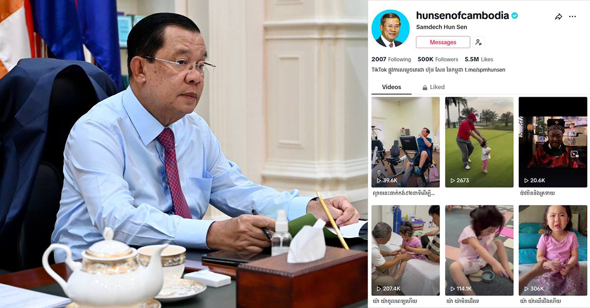 (ភ្នំពេញ)៖ បណ្តាញ TikTok ផ្លូវការរបស់សម្តេចតេជោ ហ៊ុន សែន ប្រធានគណបក្សប្រជាជនកម្ពុជា និងជាប្រធានក្រុមឧត្តមប្រឹក្សាផ្ទាល់ព្រះមហាក្សត្រ មានអ្នក Follower កើនឡើងរហូតដល់ជាង 500K ហើយក្នុងរយៈពេលខ្លីតែប៉ុណ្ណោះ ខណៈវិដេអូចៅស្រីសម្តេចផ្ទុះការចំណាប់អារម្មណ៍ខ្លាំងជាងគេ ដោយមានអ្នកមើលជាង 7.4M។ ក្រៅពីសន្ទុះ Follower ក៏មានអ្នក Likes រហូតដល់ 5.5M ផងដែរ។ សម្តេចតេជោ ហ៊ុន សែន ចាប់ផ្តើមប្រើប្រាស់បណ្តាញសង្គម TikTok កាលពីថ្ងៃទី២៨ ខែមិថុនា ឆ្នាំ២០២៣ ហើយនៅថ្ងៃទី០៤ ខែកក្កដា ឆ្នាំ២០២៣