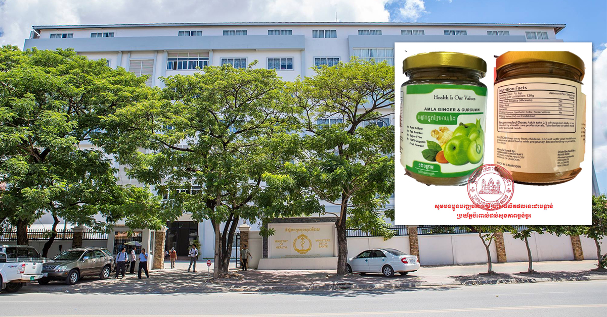 (ភ្នំពេញ)៖ លោក ម៉ម ប៊ុនហេង រដ្ឋមន្ត្រីក្រសួងសុខាភិបាល បានចេញសេចក្តីសម្រេចបិទសិប្បកម្ម លីង កិន និងវេចខ្ចប់តែ «ហ៉ឺបខ្មែរ Herb Khmer» និងមិនអនុញ្ញាតឱ្យប្រើប្រាស់ផលិតផល «ម្សៅកន្ទួតព្រៃអាយុវែង» ដែលប៉ះពាល់ដល់សុខភាព។ នេះបើតាមសេចក្តីសម្រេច ដែលបណ្តាញព័ត៌មាន Fresh News ទទួលបាននៅព្រឹកថ្ងៃទី១៦ ខែសីហានេះ។ ក្រសួងសុខាភិបាលបញ្ជាក់ថា តាមការវិភាគគុណភាព នៅមជ្ឈមណ្ឌលជាតិពិសោធន៍សុខាភិបាល នៃក្រសួងសុខាភិបាល បានបញ្ជាក់លទ្ធផលថាផលិតផល ម្សៅកន្ទួតព្រៃអាយុវែង (AMLA GINGER & CURCUMIN) មានទម្ងន់១២០ក្រាម ក្នុងមួយដបកែវ ដែលបានផ្សព្វផ្សាយលក់តាមរយៈបណ្ដាញទំនាក់ទំនងសង្គមហ្វេសប៊ុក