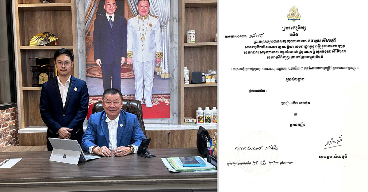 (ភ្នំពេញ)៖ ព្រះករុណាព្រះបាទសម្ដេចព្រះបរមនាថ នរោត្តម សីហមុនី ព្រះមហាក្សត្រនៃកម្ពុជា បានចេញព្រះរាជក្រឹត្យត្រាស់បង្គាប់ផ្ដល់គោរមងារដល់លោកឧកញ៉ា ម៉េត តារាម៉ូវ អគ្គនាយកក្រុមហ៊ុន YSM Real Estate អគ្គនាយកក្រុមហ៊ុន Top One YSM restaurant អគ្គនាយករងក្រុមហ៊ុន Econ Group អគ្គនាយករងក្រុមហ៊ុន Naturesgoodness និងជាអគ្គនាយករងវិទ្យុឯករាជ្យ ដំឡើងជា «អ្នកឧកញ៉ា» ដែលជាអ្នកឧកញ៉ាវ័យក្មេងជាងគេ។ ការចេញព្រះរាជក្រឹត្យត្រាស់បង្គាប់នេះ ធ្វើឡើងបន្ទាប់ពីមានសំណើរបស់សម្ដេចតេជោ ហ៊ុន សែន នាយករដ្ឋមន្ត្រីនៃកម្ពុជា៕ ខាងក្រោមនេះជាព្រះរាជក្រឹត្យរបស់ព្រះមហាក្សត្រ៖ ផ្តល់សិទ្ធិដោយ៖ freshnews