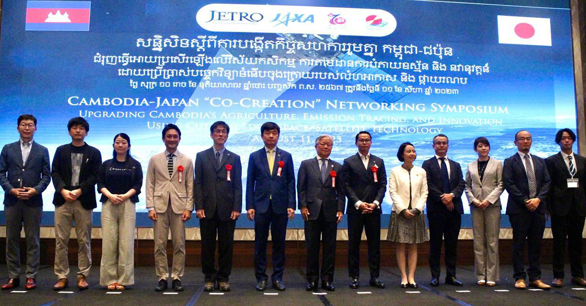 (ភ្នំពេញ)៖ អង្គការពាណិជ្ជកម្មក្រៅស្រុកជប៉ុន (JETRO) និងទីភ្នាក់ងាររុករកអវកាសជប៉ុន (JAXA) បាននាំក្រុមហ៊ុនបច្ចេកវិទ្យាទំនើបចុងក្រោយរបស់ជប៉ុនចំនួនប្រាំពីរ ដើម្បីរួមគ្នាសិក្សាស្វែងយល់ អភិវឌ្ឍន៍ធ្វើយ៉ាងណាឲ្យមានភាពប្រសើរឡើងនៃវិស័យកសិកម្មនៅកម្ពុជា តាមរយៈបច្ចេកវិទ្យាទំនើបចុងក្រោយរបស់ជប៉ុន។ ក្នុងសន្និសីទស្ដីពីការបង្កើតកិច្ចសហការរួមគ្នា រវាងកម្ពុជា-ជប៉ុន ជំរុញធ្វើឲ្យប្រសើរឡើងលើវិស័យកសិកម្ម ការតាមដានការបំភាយឧស្ម័ន និងនវានុវត្តន៍ ដោយប្រើប្រាស់បច្ចេកវិទ្យាទំនើបចុងក្រោយ របស់លំហអាកាស និងផ្ការរណនេះមានការចូលរួមពី លោកឧកញ៉ា សុខ ពិសិដ្ឋ អនុប្រធានសភាពាណិជ្ជកម្មកម្ពុជា, លោកស្រី Marisa Haruta ប្រធានតំណាងអង្គការពាណិជ្ជកម្មក្រៅស្រុកកម្ពុជា JETRO, លោក Atsushi UENO ឯកអគ្គរដ្ឋទូតវិសាមញ្ញ និងពេញសមត្ថភាពនៃប្រទេសជប៉ុនប្រចាំកម្ពុជា និងលោកបណ្ឌិត កាន ច័ន្ទមេត្តា