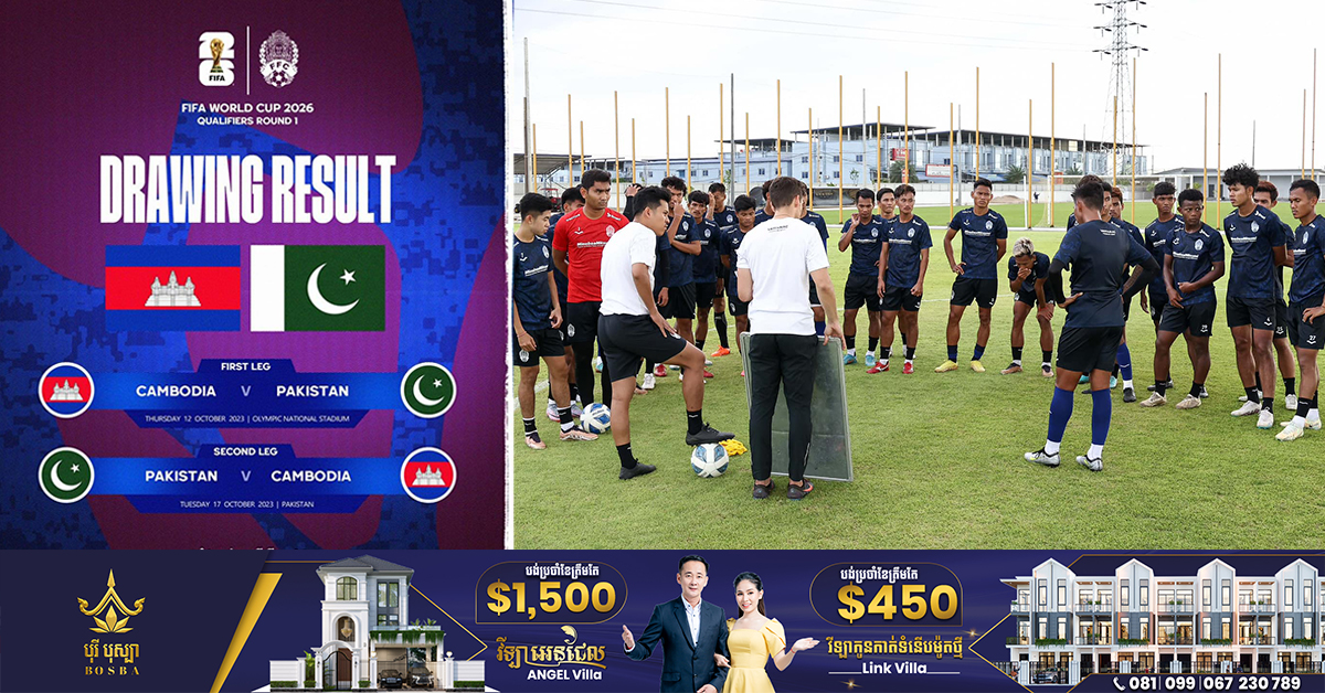 (ភ្នំពេញ)៖ ជាផ្លូវការនៃលទ្ធផលចាប់ឆ្នោតក្នុងវគ្គជម្រុះបាល់ទាត់ពិភពលោក FIFA WORLD CUP 2026 សម្រាប់ជុំទី១ ក្រុមជម្រើសជាតិកម្ពុជា ត្រូវជួបជាមួយនឹងក្រុមជម្រើសជាតិប៉ាគីស្ថាន, នេះបើតាមប្រភពពីសហព័ន្ធកីឡាបាល់ទាត់កម្ពុជា បានឱ្យដឹងនាថ្ងៃទី២៧ ខែកក្កដា ឆ្នាំ២០២៣។ ដែលការប្រកួតនេះនឹងធ្វើឡើងជា ២ជើង ដោយប្រកួតជើងទី១ នៅធ្វើឡើងនៅថ្ងៃទី១២ ខែតុលា ឆ្នាំ២០២៣ នាពហុកីឡដា្ឋនជាតិអូឡាំពិច ហើយជើងទី២ ធ្វើនៅថ្ងៃទី១៧ ខែតុលា ឆ្នាំ២០២៣ នៅប្រទេសប៉ាគីស្ថាន។ បញ្ជាក់ផងថា សម្រាប់ព្រឹត្តិការណ៍បាល់ទាត់ពិភពលោក FIFA World Cup 2026 នឹងរៀបចំឡើងដោយមានសហម្ចាស់ផ្ទះរវាងសហរដ្ឋអាមេរិក, ម៉ិកស៊ិក និងកាណាដា