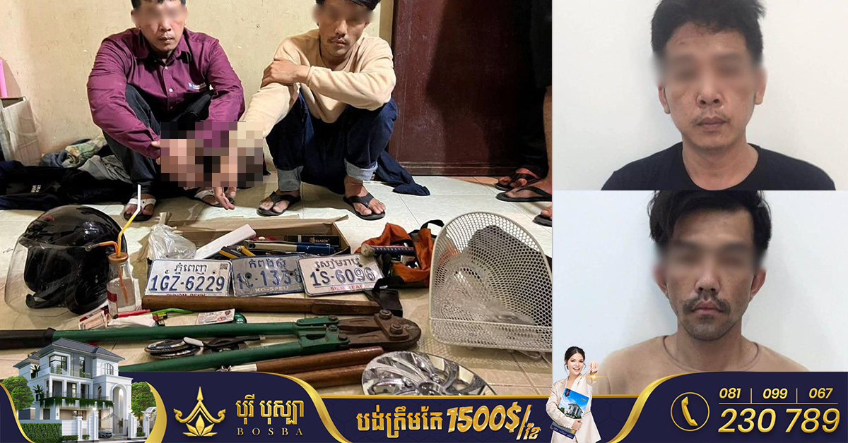 រាជធានីភ្នំពេញ៖ យោងតាមការចុះផ្សាយរបស់ ស្នងការដ្ឋាននគរបាលរាជធានីភ្នំពេញ បានឱ្យដឹងថា នៅថ្ងៃទី២២ ខែមីនា ឆ្នាំ២០២៣ វេលាម៉ោង ១៩:៤០នាទី កម្លាំងការិយាល័យនគរបាលព្រហ្មទណ្ឌកំរិតស្រាលរាជធានីភ្នំពេញ បានស្រាវជ្រាវឃាត់ខ្លួនជនសង្ស័យចំនួន០២នាក់ នៅចំណុចផ្លូវលូ សង្កាត់ឬស្សីកែវ ខណ្ឌឬស្សីកែវ រាជធានីភ្នំពេញ ពាក់ព័ន្ធករណីលួចយកម៉ូតូរបស់ប្រជាពលរដ្ឋក្នុងរាជធានីភ្នំពេញ និងតាមបណ្តាខេត្ត ចំនួន០៤ករណី។ ករណីទី១៖ ករណីយកដែកសំប៉ែតចុងស្រួចរាងអក្សរT ធ្វើសកម្មភាពកាច់បំបែកសោកុងតាក់ម៉ូតូលួចយកម៉ូតូ ម៉ាកហុងដា ZOOMERX ពណ៌ ខ្មៅ សេរីឆ្នាំ២០១៧ ពាក់ផ្លាកលេខបន្ទាយមានជ័យ ១O-៥៦៧៧ ប្រព្រឹត្តនៅចំណុចមុខតូចលក់ដូរ ផ្លូវជាតិលេខ៦ ក្រុម០៥ ភូមិបាក់ខែងលើ សង្កាត់បាក់ខែង ខណ្ឌជ្រោយចង្វារ
