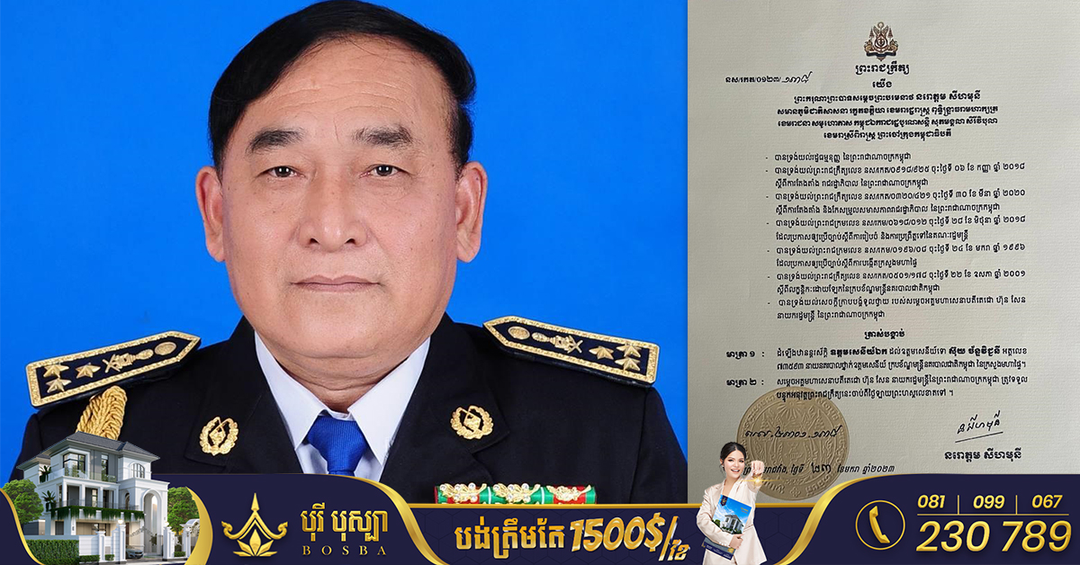 (ភ្នំពេញ)៖ ព្រះករុណា ព្រះបាទ សម្តេចព្រះ បរមនាថ នរោត្តម សីហមុនី ព្រះមហាក្សត្រនៃព្រះរាជាណាចក្រកម្ពុជា ចេញព្រះរាជក្រឹត្យត្រាស់បង្គាប់ដំឡើងឋានន្តរស័ក្តិថ្នាក់ឧត្តមសេនីយ៍ឯក (ផ្កាយ៣) ជូនឧត្តមសេនីយ៍ទោ ស៊ុយ ច័ន្ទវិជ្ជនី។ នេះបើតាមព្រះរាជក្រឹត្យដែលបណ្តាញព័ត៌មាន Fresh News ទទួលបាននៅថ្ងៃទី១៩ ខែមីនា ឆ្នាំ២០២៣។ ឧត្តមសេនីយ៍ឯក ស៊ុយ ច័ន្ទវិជ្ជនី មានតួនាទីជាអគ្គនាយករង នៃអគ្គនាយកដ្ឋានសវនកម្មផ្ទៃក្នុង ក្រសួងមហាផ្ទៃ៕ ផ្តល់សិទ្ធិដោយ៖ freshnews ខាងក្រោមនេះជាព្រះរាជក្រឹត្យរបស់ព្រះមហាក្សត្រ៖