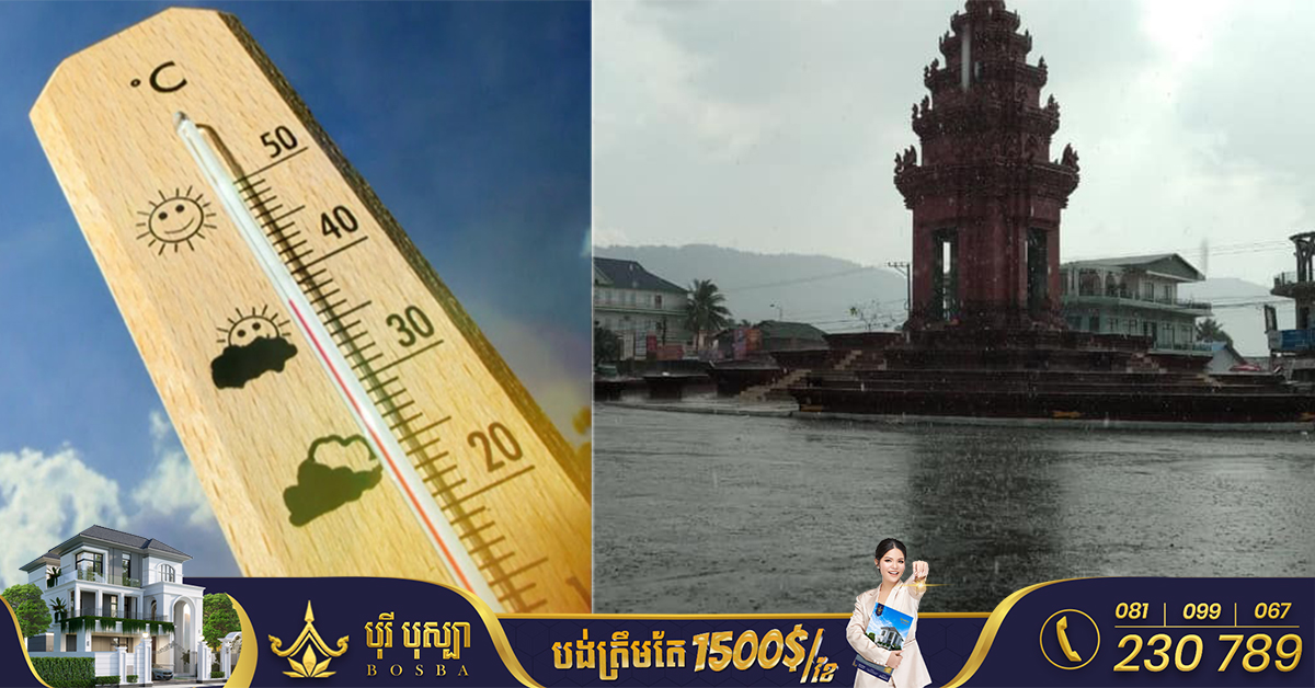(ភ្នំពេញ)៖ ក្រសួងធនធានទឹក និងឧតុនិយម នៅព្រឹកថ្ងៃទី២១ ខែមីនានេះ បានចេញសេចក្តីជូនដំណឹង ពីស្ថានភាពធាតុអាកាសនៅកម្ពុជា ចាប់ពីថ្ងៃទី២២-២៨ ខែមីនា ឆ្នាំ២០២៣។ ក្រសួងធនធានទឹកបញ្ជាក់ថា ក្នុងអំឡុងមួយសប្តាហ៍ខាងមុខនេះ ព្រះរាជាណាចក្រកម្ពុជា ទទួលឥទ្ធិពលពីជ្រលងសម្ពាធទាបខ្សោយ និងខ្យល់បម្រែបម្រួល ដែលជាហេតុបង្កលក្ខណៈងាយស្រួល ក្នុងការកកើតឡើងនូវស្រទាប់កំដៅ (heat low pressure cell) បណ្តាលឲ្យសីតុណ្ហភាពកើន នឹងអាចមានភ្លៀងដោយអន្លើ។ ស្ថានភាពបែបនេះនឹងធ្វើឲ្យ៖ ១៖ តំបន់ទំនាបកណ្តាល * សីតុណ្ហភាពអប្បបរមាមានពី ២៥-២៧ °C * សីតុណ្ហភាពអតិបរមា មានពី ៣៦-៣៨