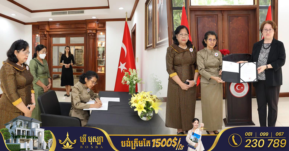 (ភ្នំពេញ)៖ កាកបាទក្រហមកម្ពុជា ដែលមាន ហ្លួងម៉ែ នរោត្តម មុនិនាថ សីហនុ ជាព្រះប្រធានកិត្តិយស និងសម្តេចកិត្តិព្រឹទ្ធបណ្ឌិត ប៊ុន រ៉ានី ហ៊ុនសែន ជាប្រធាន នារសៀលថ្ងៃទី១៣ ខែកុម្ភៈ ឆ្នាំ២០២៣ លោកស្រី ពុំ ចន្ទីនី អគ្គលេខាធិការកាកបាទក្រហមកម្ពុជា បានដឹកនាំប្រតិភូ ចូលរួមរំលែកទុក្ខ និងសាររំលែកទុក្ខរបស់សម្តេចកិត្តិព្រឹទ្ធបណ្ឌិត ប៊ុន រ៉ានី ហ៊ុនសែន ព្រមទាំងនាំយកថវិកា ១០ម៉ឺនដុល្លារ ប្រគល់ជូនឯកអគ្គរដ្ឋទូតវិសាមញ្ញ និងពេញសមត្ថភាព សាធារណរដ្ឋតួកគី ប្រចាំកម្ពុជា លោកស្រី អ៊ូឃូ