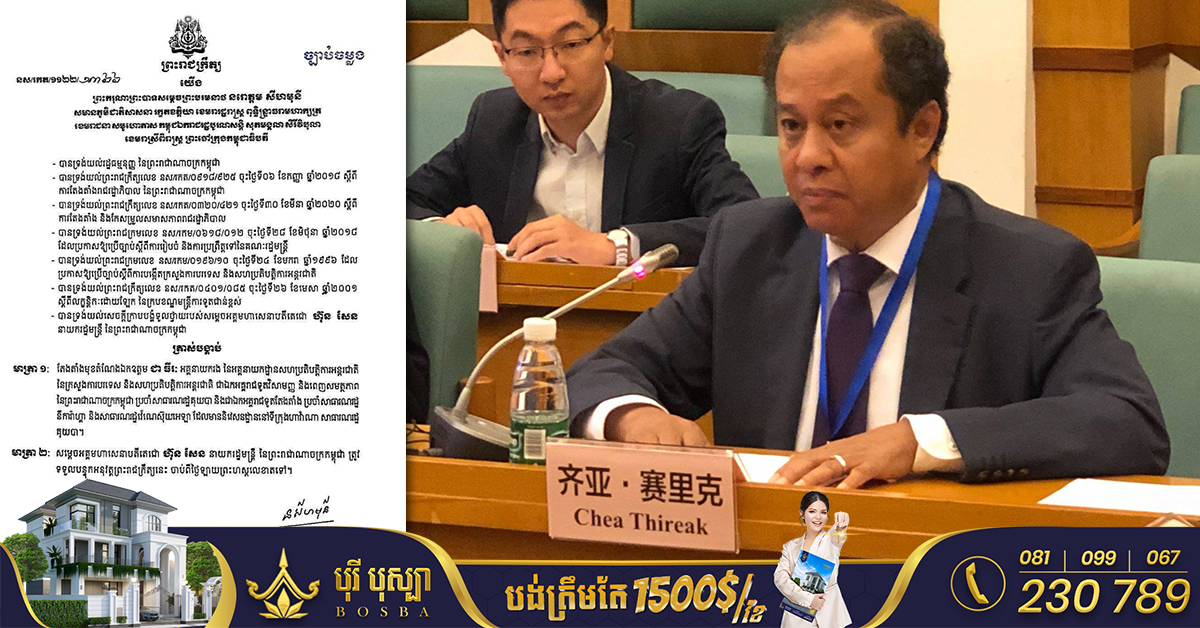 រាជធានីភ្នំពេញ៖ នៅថ្ងៃទី១២ ខែមករា ឆ្នាំ២០២៣ យោងតាមព្រះរាជក្រឹត្យ ព្រះករុណាព្រះបាទសម្តេចព្រះបរមនាថ នរោត្តម សីហមុនី ព្រះមហាក្សត្រនៃព្រះរាជាណាចក្រកម្ពុជា បានចេញព្រះរាជក្រឹត្យតែងតាំង ឯកឧត្ដម លឹម ហុកសេង ជា ឯកអគ្គរាជទូតកម្ពុជា ប្រចាំប្រទេសប្រ៊ុយណេ។ ព្រះមហាក្សត្រ តែងតាំងមុខតំណែងឯកឧត្តម លឹម ហុកសេង អគ្គនាយករង នៃក្រុមស្រាវជ្រាវ វិភាគ និង ព្យាករណ៍ នៃក្រសួងការបរទេស និងសហប្រតិបត្តិការអន្តរជាតិ ជាឯកអគ្គរាជទូតវិសាមញ្ញ និង ពេញសមត្ថភាព នៃព្រះរាជាណាចក្រកម្ពុជា ប្រចាំប្រទេសប៊្រុយណេដារូស្សាឡាម។ ដោយសម្តេចអគ្គមហាសេនាបតីតេជោ ហ៊ុន