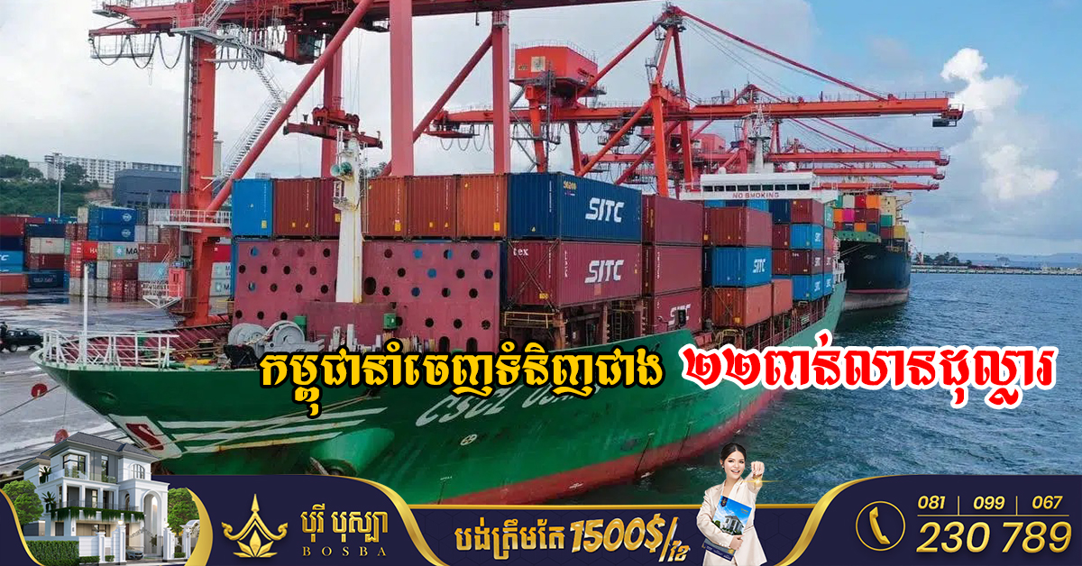(ភ្នំពេញ)៖ រយៈពេលពេញ១ឆ្នាំ២០២២ កម្ពុជាបាននាំចេញទំនិញទៅកាន់ទីផ្សារអន្តរជាតិ ក្នុងតម្លៃជាង ២២ពាន់លានដុល្លារ កើនឡើង១៦.៤% បើធៀបនឹងរយៈពេលដូចគ្នា កាលពីឆ្នាំ២០២១។ នេះបើយោងតាមរបាយការពីអគ្គនាយកដ្ឋានគយ និងរដ្ឋាករកម្ពុជា ដែលបណ្តាញព័ត៌មាន Fresh News ទទួលបាននៅថ្ងៃទី១០ ខែមករា ឆ្នាំ២០២៣នេះ។ ទិន្នន័យដដែលនេះបានបញ្ជាក់ថា ពីខែមករា ដល់ខែធ្នូ ឆ្នាំ២០២២ កម្ពុជានាំចេញទំនិញក្នុងតម្លៃ ២២ ៤៨២ លានដុល្លារ កើនឡើង ១៦.៤% បើធៀបនឹងរយៈពេលដូចគ្នាកាលពីឆ្នាំមុន ដែលតម្លៃ ១៩ ៣០៨ លានដុល្លារ។ ទន្ទឹមគ្នានេះ កម្ពុជាបាននាំចូលទំនិញមកវិញក្នុងតម្លៃ ២៩