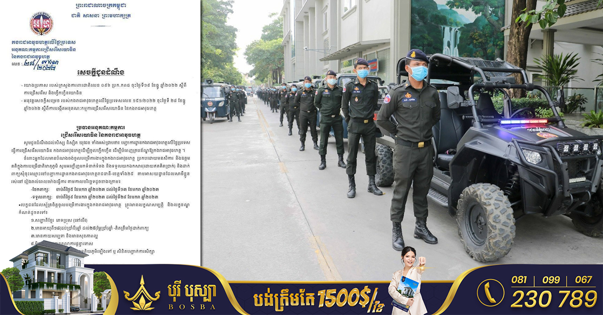 រាជធានីភ្នំពេញ៖ យោងតាមការចុះផ្សាយរបស់ កងរាជអាវុធហត្ថលើផ្ទៃប្រទេស នៅថ្ងៃទី៣១ ខែធ្នូ ឆ្នាំ២០២២ បានចេញសេចក្ដីជូនដំណឹង ស្ដីពីការជ្រើសរើសបុគ្គលិក កងរាជអាវុធហត្ថលើផ្ទៃប្រទេស ក្នុងក្របខ័ណ្ឌកងរាជអាវុធហត្ថ។ ប្រធានអនុគណៈកម្មការជ្រើសរើសបុគ្គលិក កងរាជអាវុធហត្ថ សូមជំរាបជូនដល់សិស្សានុសិស្ស និងយុវជនទាំងអស់ឱ្យបានជ្រាបថា៖ សម្រាប់បងប្អូនដែលមានបំណងចង់ចូលបម្រើការងារក្នុងកងរាជអាវុធហត្ថប្រកបដោយមនសិការ និងឧត្តមគតិក្នុងការបម្រើជាតិមាតុភូមិ សូមទំនាក់ទំនងមកទទួលឯកសារ (ដោយមិនគិតប្រាក់) និងដាក់ពាក្យសុំចុះឈ្មោះនៅកងរាជអាវុធហត្ថរាជធានី-ខេត្តទាំង២៥ តាមអាស័យដ្ឋានដែលបុគ្គលនោះរស់នៅរៀងរាល់ម៉ោងធ្វើការតាមកាលបរិច្ឆេទដូចខាងក្រោម៖ – ចែកពាក្យ៖ ចាប់ពីថ្ងៃទី ០៥ ខែមករា ឆ្នាំ២០២៣ ដល់ថ្ងៃទី១៣ ខែមករា ឆ្នាំ២០២៣ – ទទួលពាក្យ៖ ចាប់ពីថ្ងៃទី៩ ខែមករា ឆ្នាំ២០២៣