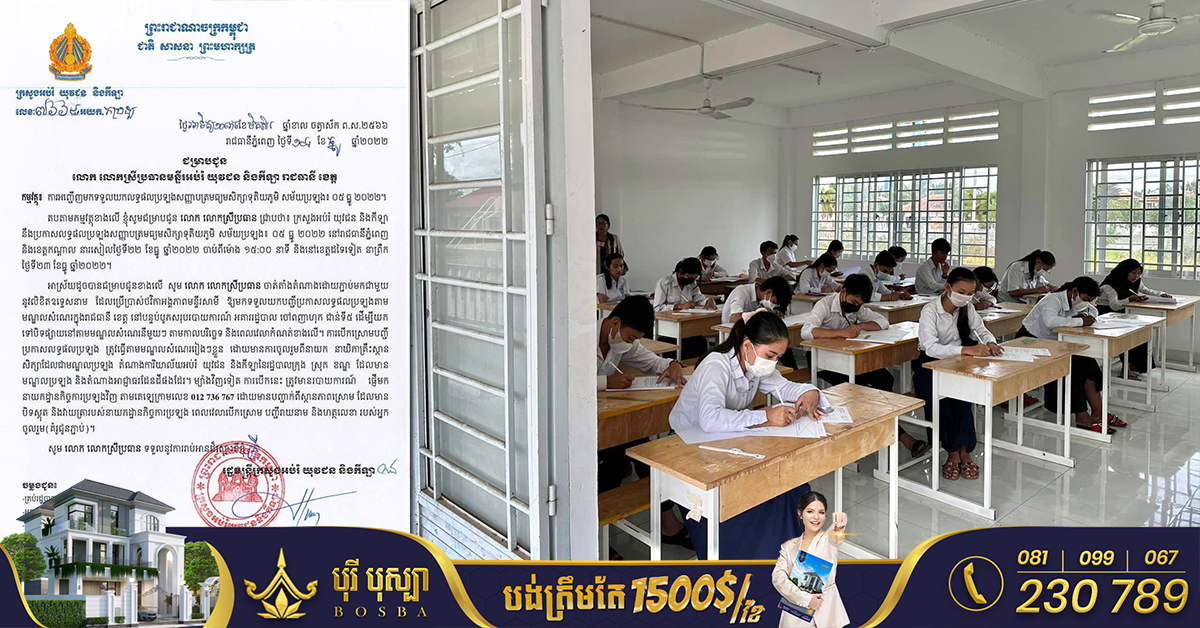 រាជធានីភ្នំពេញ៖ យោងតាមការចុះផ្សាយរបស់ ក្រសួងអប់រំ យុវជន និងកីឡា នៅថ្ងៃទី២១ ខែធ្នូ ឆ្នាំ២០២២ បានឱ្យដឹងថា ក្រសួងអប់រំ យុវជន និងកីឡា នឹងប្រកាសលទ្ធផលប្រឡងសញ្ញាបត្រមធ្យមសិក្សាទុតិយភូមិ សម័យប្រឡង៖ ០៥ ធ្នូ ២០២២ នៅរាជធានីភ្នំពេញ និងខេត្តកណ្តាល នារសៀលថ្ងៃទី២២ ខែធ្នូ ឆ្នាំ២០២២ ចាប់ពីម៉ោង ១៥៖០០ នាទី និងនៅខេត្តដទៃទៀត នាព្រឹកថ្ងៃទី២៣ ខែធ្នូ ឆ្នាំ២០២២។ អាស្រ័យដូចបានជម្រាបជូនខាងលើ សូម លោក លោកស្រីប្រធាន ចាត់តាំងតំណាងដោយភ្ជាប់មកជាមួយ