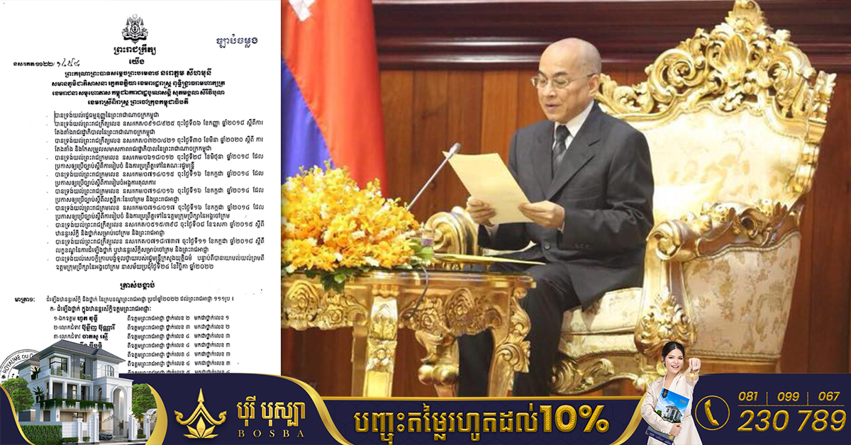 រាជធានីភ្នំពេញ៖ យោងតាមព្រះរាជក្រឹត្យរបស់ ព្រះករុណា ព្រះបាទសម្តេចព្រះបរមនាថ នរោត្តម សីហមុនី ព្រះមហាក្សត្រនៃកម្ពុជា នៅថ្ងៃទី២៦ ខែវិច្ឆិកា ឆ្នាំ២០២២ ទ្រង់បានត្រាស់បង្គាប់ ដំឡើងឋានន្តរស័ក្ដិ និងថ្នាក់ នៃក្របខណ្ឌព្រះរាជអាជ្ញា ប្រចាំឆ្នាំ២០២២ ដល់ព្រះរាជអាជ្ញា ១១១រូប ដែលបានដំឡើងឋានន្តរស័ក្តិ និងថ្នាក់នេះមាន៤កម្រិតរួមមាន៖ ព្រះរាជអាជ្ញា ៤០រូប ត្រូវបានដំឡើងថ្នាក់ក្នុងឋានន្តរស័ក្តិឧត្តមព្រះរាជអាជ្ញា, ព្រះរាជអាជ្ញា ១០រូប ត្រូវបានដំឡើងថ្នាក់ពីឋានន្តរស័ក្តិវរៈព្រះរាជអាជ្ញា មកជាឋានន្តរស័ក្តិឧត្តមព្រះរាជអាជ្ញា, ព្រះរាជអាជ្ញា ៥៤រូប ត្រូវបានដំឡើងថ្នាក់ ក្នុងឋានន្តរស័ក្តិវរៈព្រះរាជអាជ្ញា និងព្រះរាជអាជ្ញា ៧រូប ត្រូវបានដំឡើងឋានន្តរស័ក្តិ និងថ្នាក់