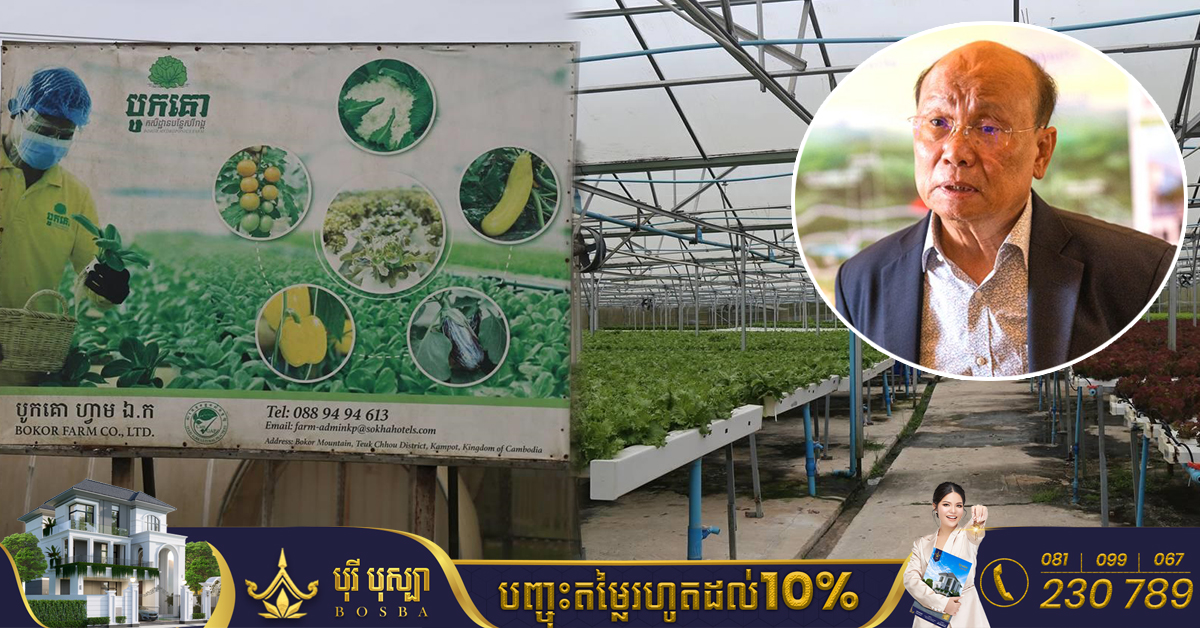 (កំពត)៖ ក្រុមហ៊ុន បូកគោហ្វាម ជាបុត្រសម្ព័ន្ធនៃក្រុមហ៊ុនសុខាគ្រុប របស់អ្នកឧកញ៉ា សុខ គង់ អគ្គនាយកក្រុមហ៊ុន សូគីម៉ិច បានសម្រេចបោះទុនវិនិយោគ៥លានដុល្លារ លើការដាំបន្លែលើភ្នំបូកគោ និងគ្រោងពង្រីកការវិនិយោគបន្ថែមទៀត។ អ្នកនាង សៀ ចាន់រ៉ា នាយិកាផ្នែកលក់ និងទីផ្សារ នៃក្រុមហ៊ុន បូកគោហ្វាម បានឲ្យដឹងថា ក្រុមហ៊ុនបានវិនិយោគកសិដ្ឋានដាំបន្លែធម្មជាតិ លើកំពូលភ្នំបូកគោ តាំងពីឆ្នាំ២០១២ ដោយដាំនៅលើដី ប៉ុន្តែចាប់ពីឆ្នាំ២០១៧ ក្រុមហ៊ុនបានកែប្រែជា Hydroponic Farm ដែលជាការដាំបន្លែនៅលើទឹក ក្នុងទំហំផ្ទៃដីទំហំ១២ហិកតា។ អ្នកនាងបន្តថា «បន្លែដែលដាំនៅកសិដ្ឋាននេះ មានលក្ខណៈពិសេស ដោយមិនប្រើប្រាស់សារធាតុគីមី