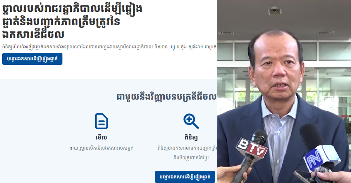 (ភ្នំពេញ)៖ លោក ជា វ៉ាន់ដេត រដ្ឋមន្រ្តីក្រសួងប្រៃសណីយ៍ និងទូរគមនាគមន៍ និងជាប្រធានគណៈកម្មាធិការរដ្ឋាភិបាលឌីជីថល (គ.រ.ឌ.) បានបញ្ជាក់ឲ្យដឹងថា កូនសិស្សជាង២០ម៉ឺននាក់ ដែលបានចូលប្រើ ថ្នាលផ្ទៀងផ្ទាត់ឯកសារ verify.gov.kh ដើម្បីសុំសញ្ញាបត្របាក់ឌុបបណ្តោះអាសន្ន ឬសញ្ញាបត្របាក់ឌុប។ ការបញ្ជាក់ឲ្យដឹងបែបនេះ ធ្វើឡើងក្នុងឱកាសដែល លោក ជា វ៉ាន់ដេត ផ្ដល់កិច្ចសម្ភាសន៍ដល់ក្រុមអ្នកសារព័ត៌មាន ពាក់ព័ន្ធថ្នាលផ្ទៀងផ្ទាត់ឯកសារ verify.gov.kh របស់កម្ពុជា ឈ្នះមេដាយមាស នៃពានរង្វាន់ឌីជីថលអាស៊ាន ឆ្នាំ២០២៤ ក្នុងពេលលោកទើបត្រឡប់មកដល់កម្ពុជា បន្ទាប់ពីចូលរួមកិច្ចប្រជុំរដ្ឋមន្ត្រីឌីជីថលអាស៊ាន លើកទី៤ នាព្រឹកថ្ងៃទី០៣ ខែកុម្ភៈ ឆ្នាំ២០២៤។ លោក