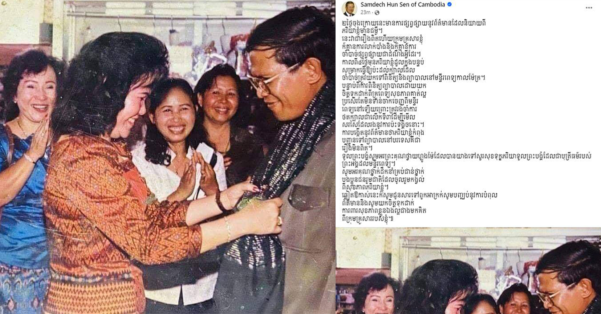 (ភ្នំពេញ)៖ សម្តេចតេជោ ហ៊ុន សែន នៅព្រឹកថ្ងៃទី២ ខែកុម្ភៈ ឆ្នាំ២០២៤នេះ បានបង្ហោះសារបញ្ជាក់ពីស្ថានភាពជំងឺរបស់សម្តេចកិត្តិព្រឹទ្ធបណ្ឌិត ប៊ុន រ៉ានី ហ៊ុនសែន ប្រធានកាកបាទក្រហមកម្ពុជា ដែលកំពុងសម្រាកព្យាបាល នៅមន្ទីរពេទ្យកាល់ម៉ែតថា នៅពេលនេះមានសុខភាពប្រសើរឡើងវិញហើយ តែក្រុមគ្រូពេទ្យមិនទាន់អនុញ្ញាតឱ្យចាកចេញពីមន្ទីរពេទ្យនៅឡើយទេ។ ជាមួយគ្នានេះ សម្តេចតេជោ ហ៊ុន សែន បានច្រានចោលនូវព័ត៌មានមិនពិតមួយចំនួន ដែលថា សម្តេចកិត្តិព្រឹទ្ធបណ្ឌិត កំពុងបញ្ជូនទៅព្យាបាលនៅបរទេស។ សម្តេចតេជោក៏បានផ្តាំទៅដល់ក្រុមមនុស្សអាក្រក់ ឱ្យបញ្ឈប់ការផ្សព្វផ្សាយ បំពុលព័ត៌មានតទៅទៀត។ សម្តេចតេជោ ហ៊ុន សែន បានបង្ហោះសារមានខ្លឹមសារទាំងស្រុងដូច្នេះថា «២ថ្ងៃចុងក្រោយនេះ មានការផ្សព្វផ្សាយនូវព័ត៌មាន ដែលនិយាយពីភរិយាខ្ញុំមានជម្ងឺ។
