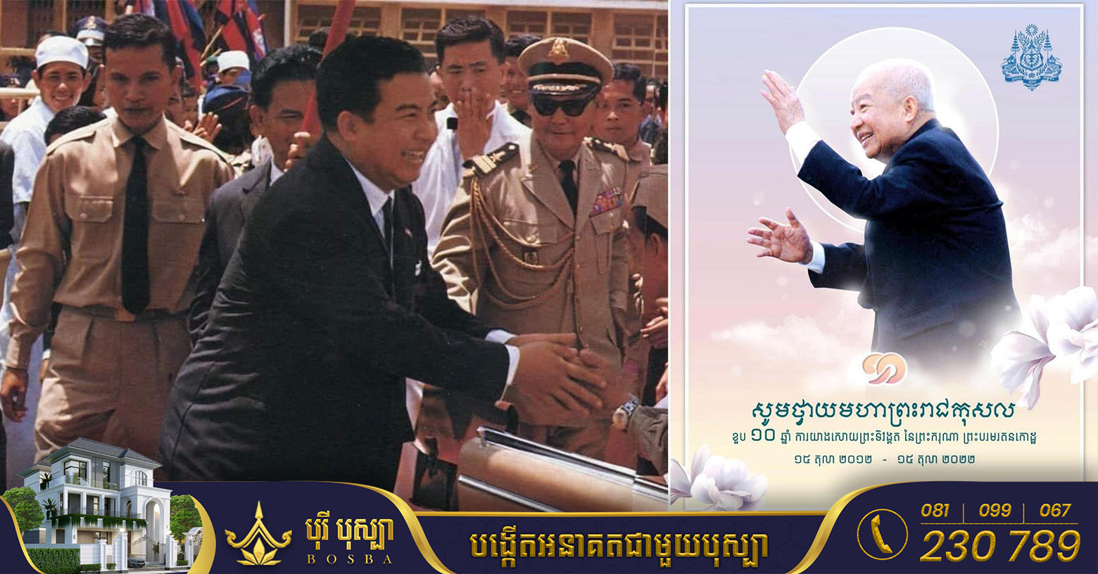 (ភ្នំពេញ)៖ នៅថ្ងៃទី១៥ ខែតុលា ឆ្នាំ២០២២នេះ ជាព្រះរាជពិធីរំលឹកខួប១០ឆ្នាំ នៃការយាងសោយទិវង្គតរបស់សម្តេចព្រះបិតាឯករាជ្យជាតិ «ព្រះបរមរតនកោដ្ឋ»។ សម្តេតេជោ ហ៊ុន សែន នាយករដ្ឋមន្ត្រីនៃកម្ពុជា តាមរយៈ Facebook ផ្លូវការ សម្តេចបានថ្លែងថា «នៅថ្ងៃនេះ ប្រជារាស្រ្តទូទាំងប្រទេស ព្រមទាំងមន្ត្រីរាជការ កងកម្លាំងប្រដាប់អាវុធគ្រប់ជាន់ថ្នាក់ សូមសម្តែងនូវការគោរពដឹងគុណដ៏ខ្ពង់ខ្ពស់បំផុតថ្វាយចំពោះ ព្រះបរមរតនកោដ្ឋ ដែលព្រះអង្គបានលះបង់ និងបូជាព្រះកាយពលដ៏ធំធេងបំផុតចំពោះជាតិមាតុភូមិកម្ពុជា»។ សម្តេចតេជោបន្ថែមថា «កូនចៅប្រជារាស្រ្តទូទាំងប្រទេស និងមន្រ្តីរាជការ សូមថ្វាយព្រះរាជកុសលព្រះវិញ្ញាណក្ខន្ឋព្រះបរមសព ព្រះករុណា ព្រះបាទសម្តេចព្រះ នរោត្តម សីហនុ សូមស្តេចយាងបដិសន្ឋិក្នុងព្រះបរមសុគតិភពកុំបីឃ្លាងឃ្លាតឡើយ»។ សូមជម្រាបថា ព្រះករុណា
