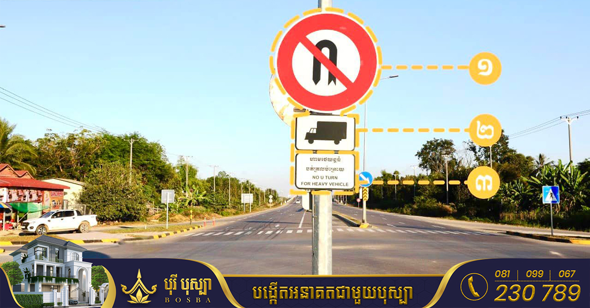 រាជធានីភ្នំពេញ៖ យោងតាមការចុះផ្សាយរបស់ ក្រសួងសាធារណការ និងដឹកជញ្ជូន នៅថ្ងៃទី៣០ ខែសីហា ឆ្នាំ២០២២ ក្រសួងសាធារណការ បានពន្យល់ពីអត្ថន័យផ្លាកសញ្ញាចរាចរណ៍នៅតាមផ្លូវចំនួន ៣ ដែលអ្នកធ្វើដំណើររគ្រប់រូបត្រូវដឹង រួមមាន៖ -ផ្លាកសញ្ញាទី១៖ សញ្ញាហាមបត់ត្រឡប់ក្រោយ (NO U TURN) សញ្ញានេះហាមយានជំនិះគ្រប់ប្រភេទបត់ត្រឡប់ក្រោយ។ -ផ្លាកសញ្ញាទី២៖ ជាផ្លាកសញ្ញាបន្ថែម បង្ហាញពី រថយន្តដឹកទំនិញធុនធំ (LARGE SIZED TRUCK) សញ្ញានេះ ប្រើសម្រាប់សម្គាល់ រថយន្តដឹកទំនិញធុនធំ ដែលជាប្រភេទរថយន្តអាចមានទម្ងន់សរុបលើស៣.៥០តោន។ -ផ្លាកសញ្ញាទី៣៖ ជាផ្លាកសញ្ញាបន្ថែម ដើម្បីបញ្ជាក់បន្ថែមពីការហាមរថយន្តធំបត់ត្រលប់ក្រោយ (NO U