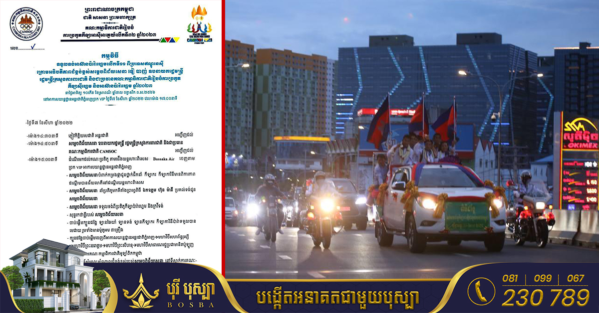(ភ្នំពេញ)៖ គណៈកម្មាធិការជាតិអូឡាំពិកកម្ពុជា NOCC នឹងរៀបចំពិធីដង្ហែក្រុមកីឡាករ-កីឡាការិនីមេដាយ រួមទាំងទង់អាស៊ានប៉ារ៉ាហ្គេម តាមបណ្តាវិថីសំខាន់ៗនៅទូទាំងរាជធានីភ្នំពេញ ក្រោយពេលប្រតិភូមាតុភូមិនិវត្តន៍នាល្ងាចថ្ងៃអាទិត្យ ទី០៧ ខែសីហា ឆ្នាំ២០២២ ស្អែកនេះ។ ក្បួនដង្ហែនោះ នឹងចាប់ផ្តើមចេញដំណើរពីអាកាសយានដ្ឋានអន្តរជាតិភ្នំពេញ តាមមហាវិថីសហព័ន្ធរុស្ស៊ី ឆ្ពោះទៅមហាវិថីព្រះនរោត្តម និងបន្តទៅកាន់មហាវិថីព្រះសីហនុ ឆ្ពោះទៅកាន់មហាវិថីសាធារណរដ្ឋប្រជាមានិតប៉ូឡូញ និងបញ្ចប់នៅទីស្នាក់ការគណៈកម្មាធិការជាតិអូឡាំពិកកម្ពុជា និងប្រសាសន័សំណេះសំណាលដ៏ខ្ពង់ខ្ពស់របស់សម្តេចពិជ័យ ទៀ បាញ់ ឧបនាយករដ្ឋមន្រ្តី រដ្ឋមន្រ្តីក្រសួងការពារជាតិ និងជាប្រធានគណៈកម្មាធិការជាតិ CAMSOC។ គួរជម្រាបថា សម្រាប់ការចូលរួមប្រកួតកីឡាជនពិការ ASEAN Para Games 2022 លើកទី១១ នៅទីក្រុង Solo