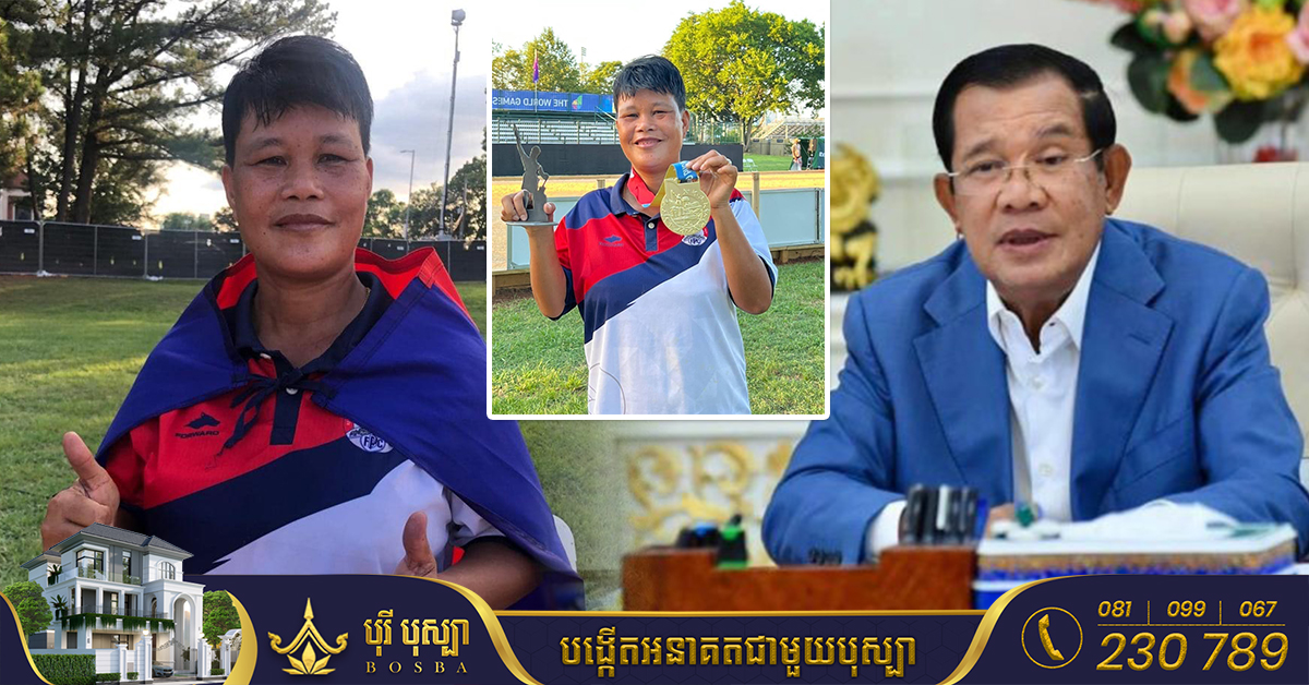 (ភ្នំពេញ)៖ សម្តេចតេជោ ហ៊ុន សែន នាយករដ្ឋមន្ត្រីនៃកម្ពុជា នៅថ្ងៃទី១៣ ខែកក្កដា ឆ្នាំ២០២២នេះ បានអបអរសាទរដល់កីឡាការិនី អ៊ុក ស្រីមុំ ដែលឈ្នះមេដាយមាសព្រឹត្តិការណ៍ World Games 2022។ កីឡាការិនីប៉េតង់ជម្រើសជាតិកម្ពុជា អ៊ុក ស្រីមុំ បានឈ្នះមេដាយមាសលើវិញ្ញាសាវាយយកពិន្ទុ នៃការប្រកួតកីឡាពិភពលោក The World Games 2022 នៅទីក្រុង Birmingham រដ្ឋ Alabama សហរដ្ឋអាមេរិក បន្ទាប់ពីយកឈ្នះកីឡាការិនីម្ចាស់ផ្ទះអាមេរិក Rebeka HOWE ដោយលទ្ធផល ៤១-២១ពិន្ទុ