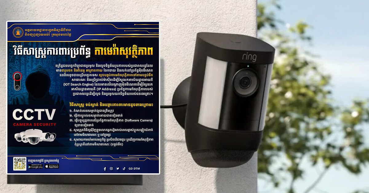 រាជធានីភ្នំពេញ៖ នៅថ្ងៃទី០៧ ខែមករា ឆ្នាំ២០២៤ យោងតាមការចុះផ្សាយរបស់ អគ្គនាយកដ្ឋានបច្ចេកវិទ្យាឌីជីថល និងផ្សព្វផ្សាយអប់រំ បានឱ្យដឹងថា ឧក្រិដ្ឋជនបច្ចេកវិទ្យាបានប្រមូល និងលួចទិន្នន័យរូបភាពរបស់ប្រជាពលរដ្ឋដែលមានជារូបថត និងវីដេអូ អាក្រាតកាយ ចែកចាយ និងលក់នៅប្រព័ន្ធអ៊ីនធឺណេត ជនខិលខូចបានប្រើបច្ចេកទេស លួចបង្កប់កាមេរ៉ាសុវត្ថិភាពនៅតាមបន្ទប់ទឹកសាធារណៈ និងប្រើប្រាស់ម៉ាស៊ីនដើម្បីស្វែងរកអាស័យដ្ឋានអាយភី (IOT Search Engine) ដែលមានលើបណ្តាញអ៊ីនធឺណេតដើម្បីស្វែងរកអាស័យដ្ឋានអាយភី (IP Address) ប្រព័ន្ធកាមេរ៉ាសុវត្ថិភាពរបស់ប្រជាពលរដ្ឋដើម្បីលួច និងប្រមូលយកទិន្នន័យរបស់ជនរងគ្រោះ។ វិធីសាស្រ្តបង្កា និងទប់ស្កាត់ មានដូចខាងក្រោម៖ ១. កំណត់លេខសម្ងាត់ឲ្យបានត្រឹមត្រូវ ២. ធ្វើការប្តូរលេខសម្ងាត់អោយបានទៀងទាត់ ៣. ធ្វើបច្ចុប្បន្នភាពលើប្រព័ន្ធកាមេរ៉ាសុវត្ថិភាព